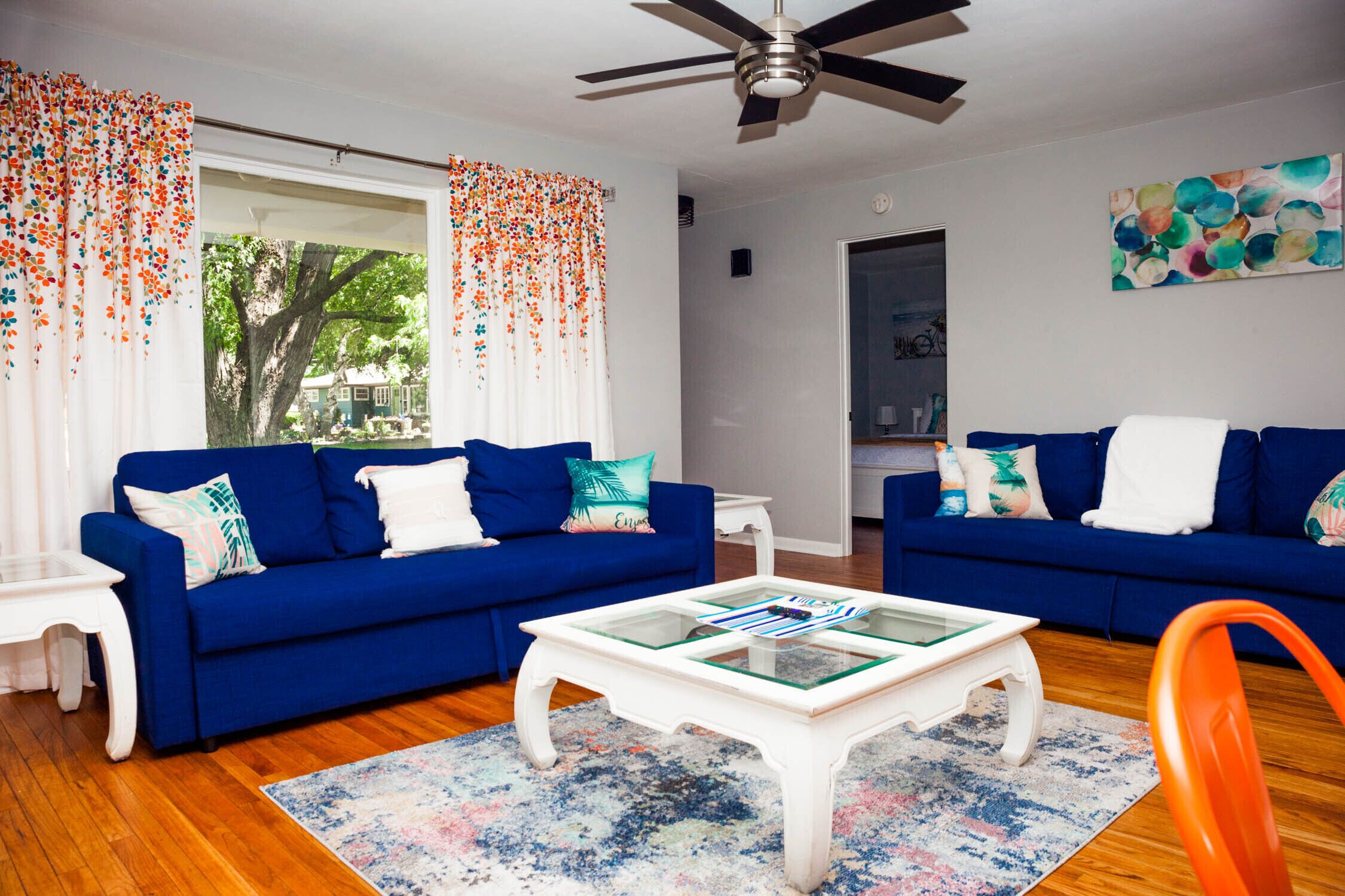 This unit is a brick duplex located in a quiet neighborhood. There is private/designated parking behind the unit. Inside you'll be welcomed by an open concept living dining area delightfully decorated to feel like a beach home.