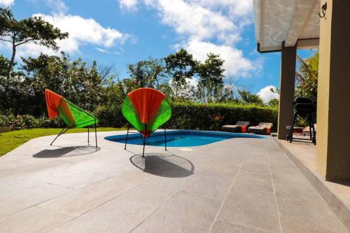 Providing a garden, An abundance of wildlife at Jungle Glory Home Abajo offers accommodations in Manuel Antonio. This property offers a private pool, free Wifi, and free private parking. Staff on site can arrange a shuttle service. Providing access to a patio with garden views, the air-conditioned vacation home consists of 3 bedrooms. Offering a terrace with pool views, this vacation home also features a flat-screen TV, a well-equipped kitchen with a microwave, a toaster, and a fridge, as well as 3 bathrooms with a shower and a hair dryer. This vacation home is allergy-free and non-smoking. The vacation home has a picnic area where you can spend the day outdoors. Manuel Antonio National Park is 3.1 miles from the vacation home, while Marina Pez Vela is 3.5 miles away. La Managua Airport is 5.6 miles from the property, and the property offers a paid airport shuttle service.