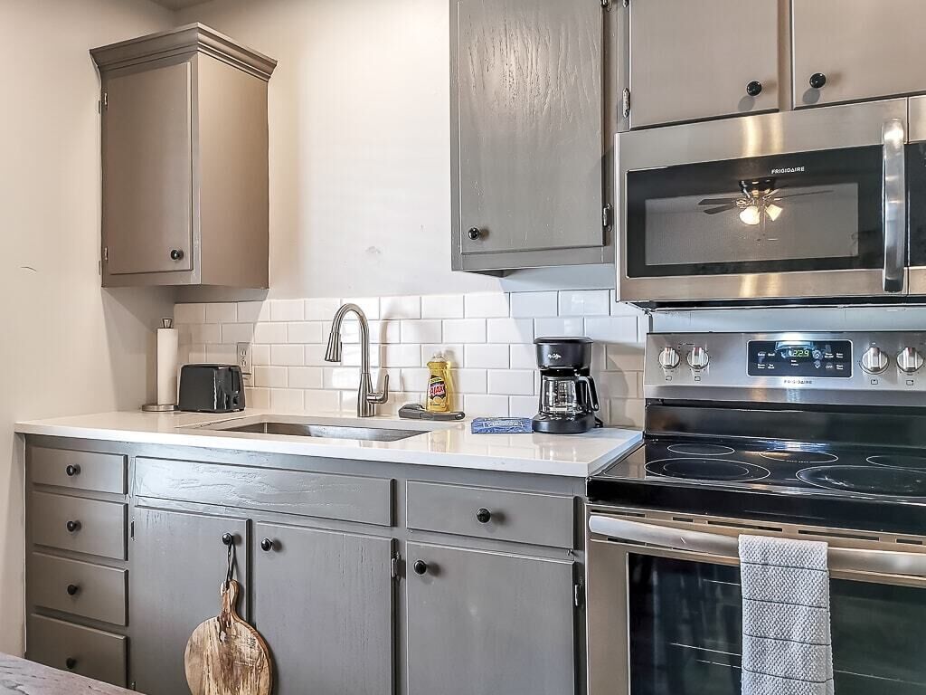 Each kitchenette is equipped with an electric cooktop, pots and pans for cooking, a small toaster oven, and a Keurig K-Cup coffee maker (including K cups).