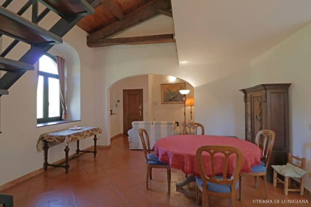 A step back in time to the private apartment (formerly the chestnut drying house), part of a stunning medieval house with thick stone walls and beautiful vaulted ceilings and arches. The chestnut drying house has been converted into a modern and comfortable split level apartment. It has a double bedroom and en-suite upstairs, kitchen-diner and private outdoor terrace/garden which gets the afternoon and evening sun. It is situated 500m above sea level with breathtaking views of the Magra valley from the private patio area. Come and relax and enjoy some traditional Italian charm immersed in nature.