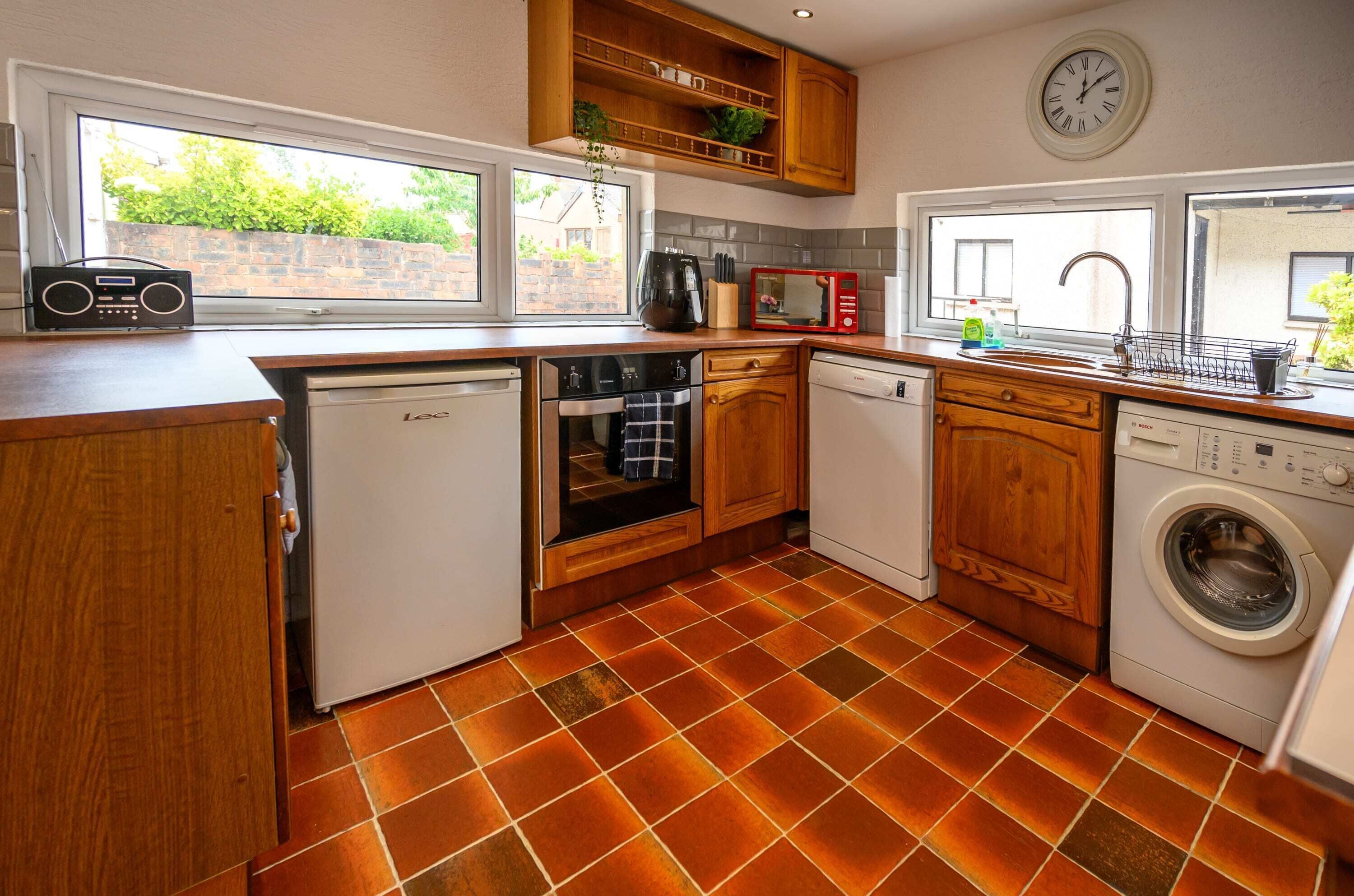 Enjoy a fully fitted and well equipped kitchen with all of the appliances, cooking utensils, pots & pans that you would expect to find in your own home, making dining in easy. You will find a modern pod-style Tassimo coffee machine for your welcome drink. We also have a washing machine and dryer in the property for your use and a secure bike storage inside the property.