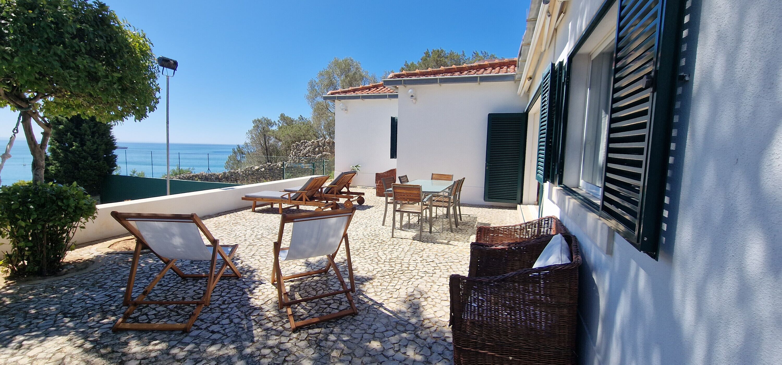 Spectacular water front property with unparalleled ocean view. With a private access to the small beach, praia de Alportuche, probably the best snorkeling spot in Portugal and surrounded by a luxuriant Mediterranean vegetation, Casa Sul Mar has an unmatched location in all the Lisbon/Setubal. A wide front deck overlooking the ocean, 4 bedrooms (one double, 2 with 2 beds and one with a bunk bed sleeping 2 children), a large living room with fire place, 2 bathrooms and a fully equipped kitchen, make Casa Sul Mar the place of choice for the best holidays of a life time.