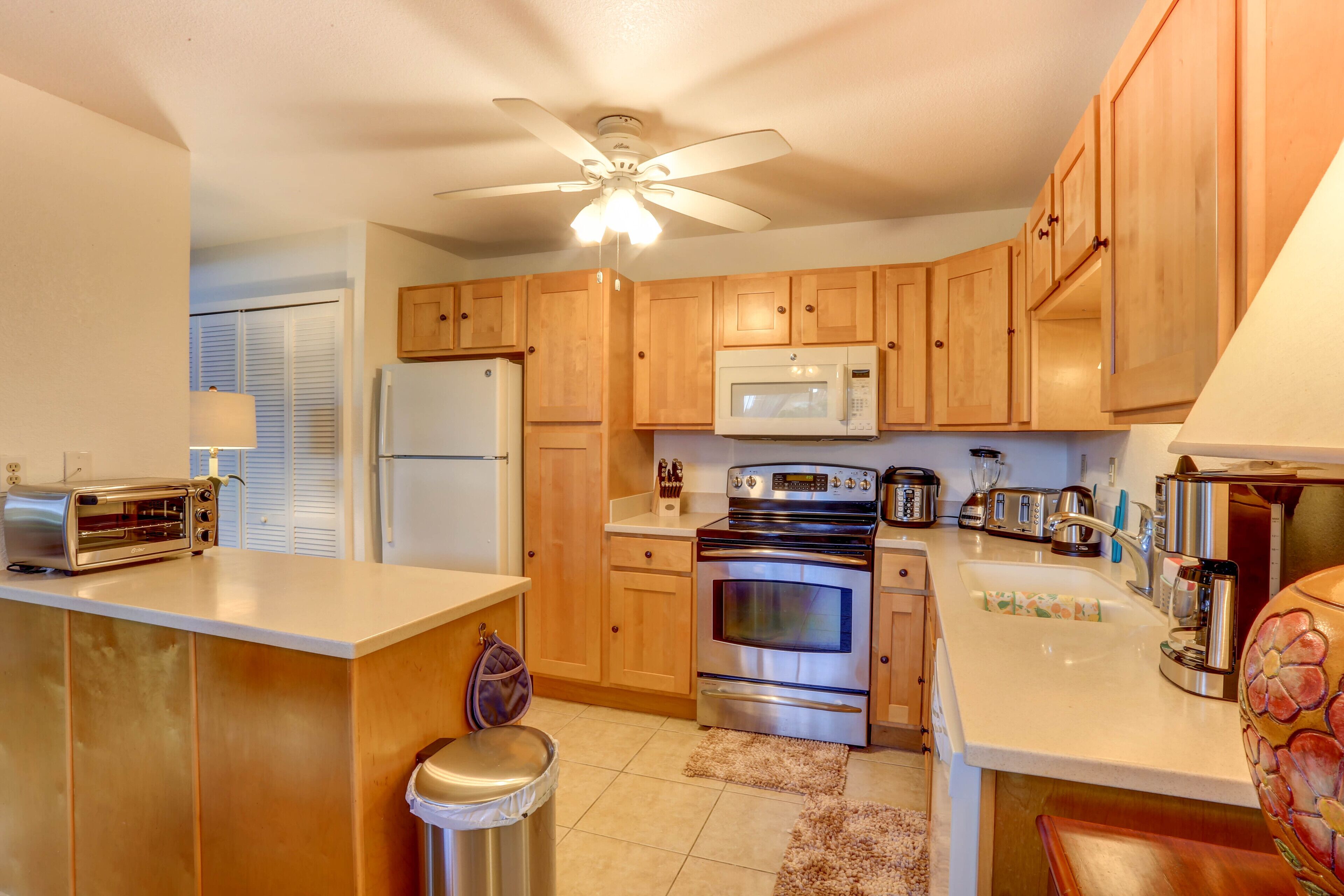 Feel free to prepare a home-cooked meal with the oven and refrigerator, coffee maker, toaster. And because there's a washer and dryer, you can go a bit lighter on your packing.