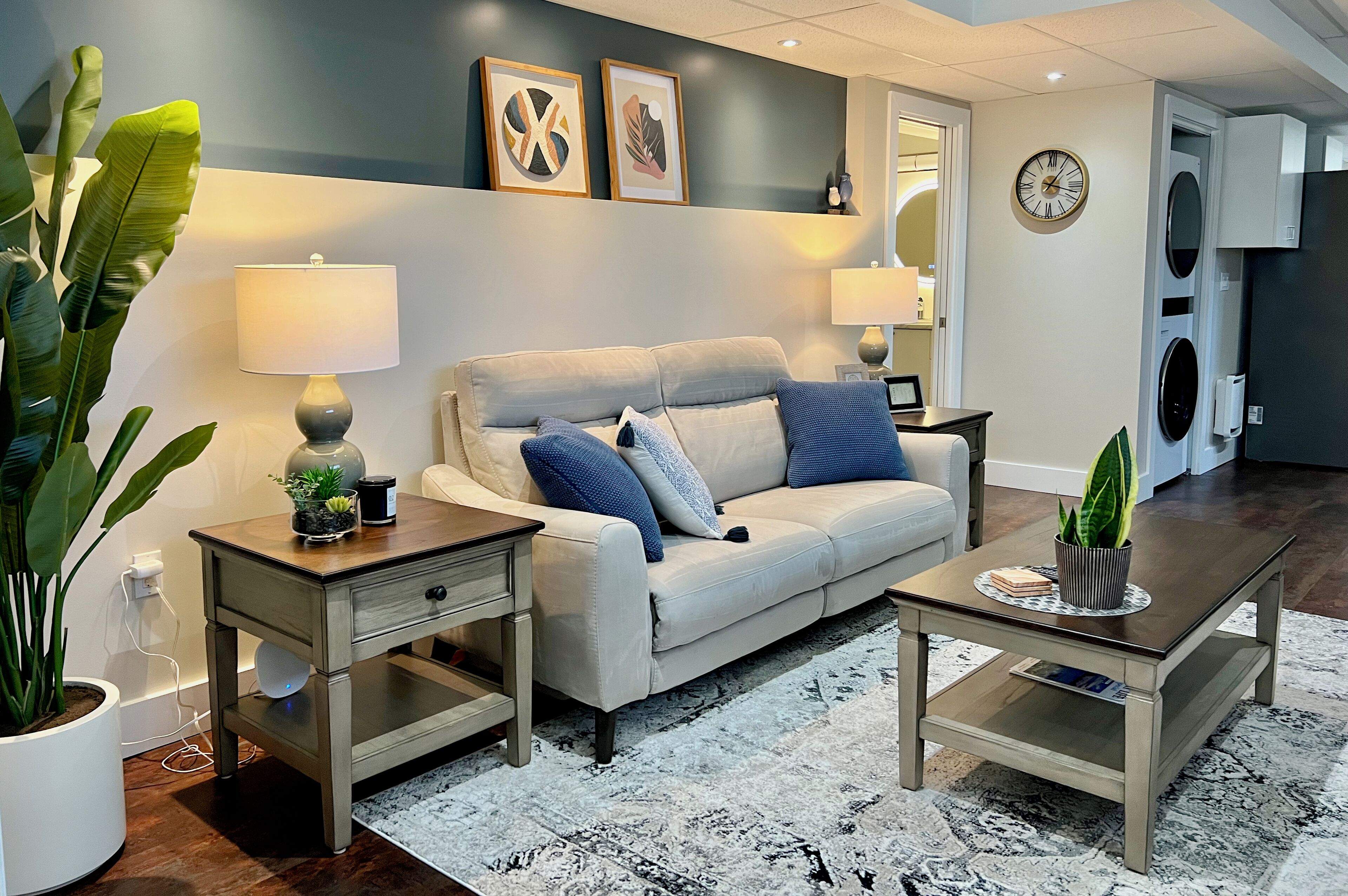 Located outside of the city on a large property, guests will have plenty of parking space, perfect for workers with large trucks or guests travelling with a trailer! Guests will have exclusive access to the basement suite during their stay.