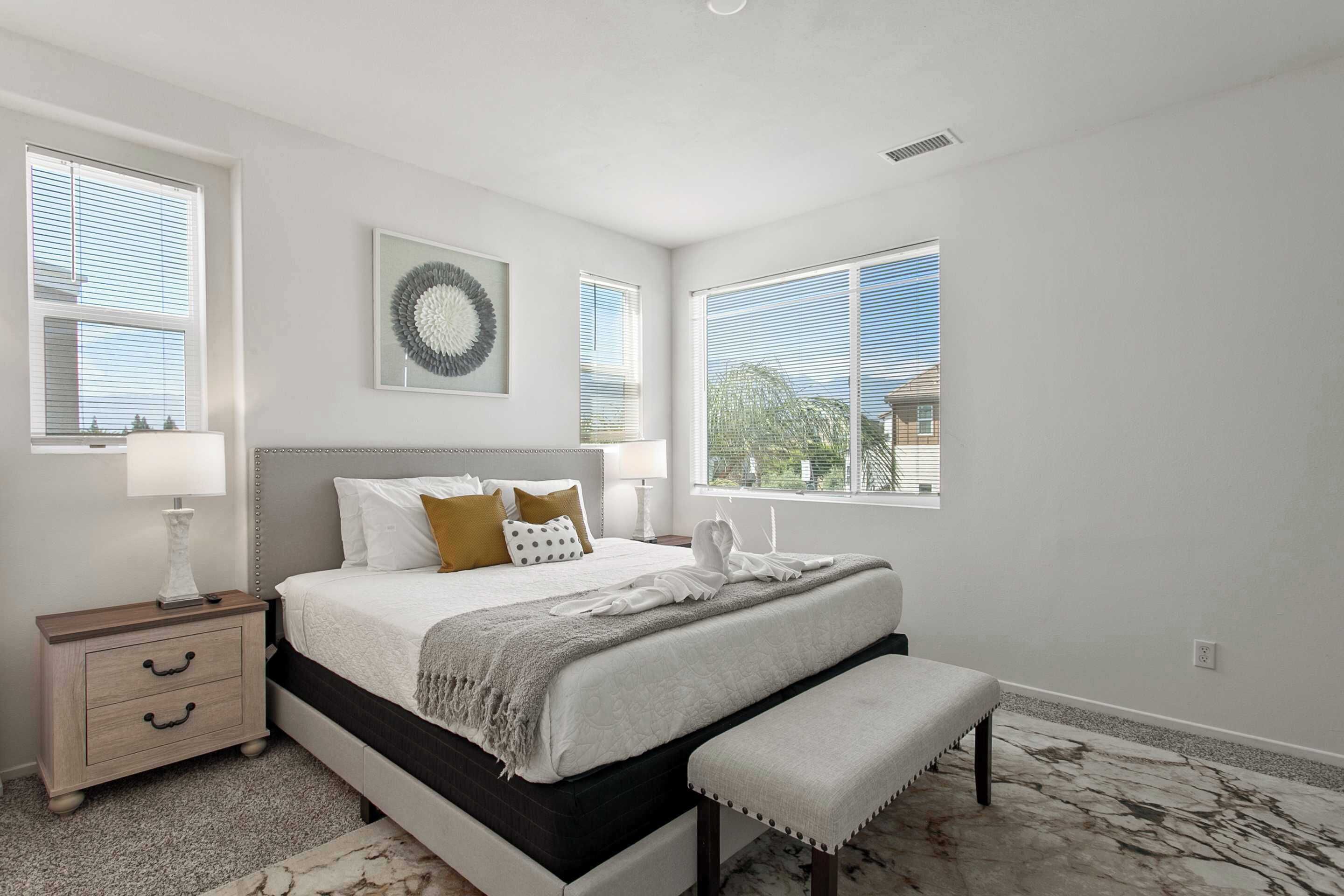 ✔ Bedroom Three – Queen Bed, Bright Windows, Shared Bathroom