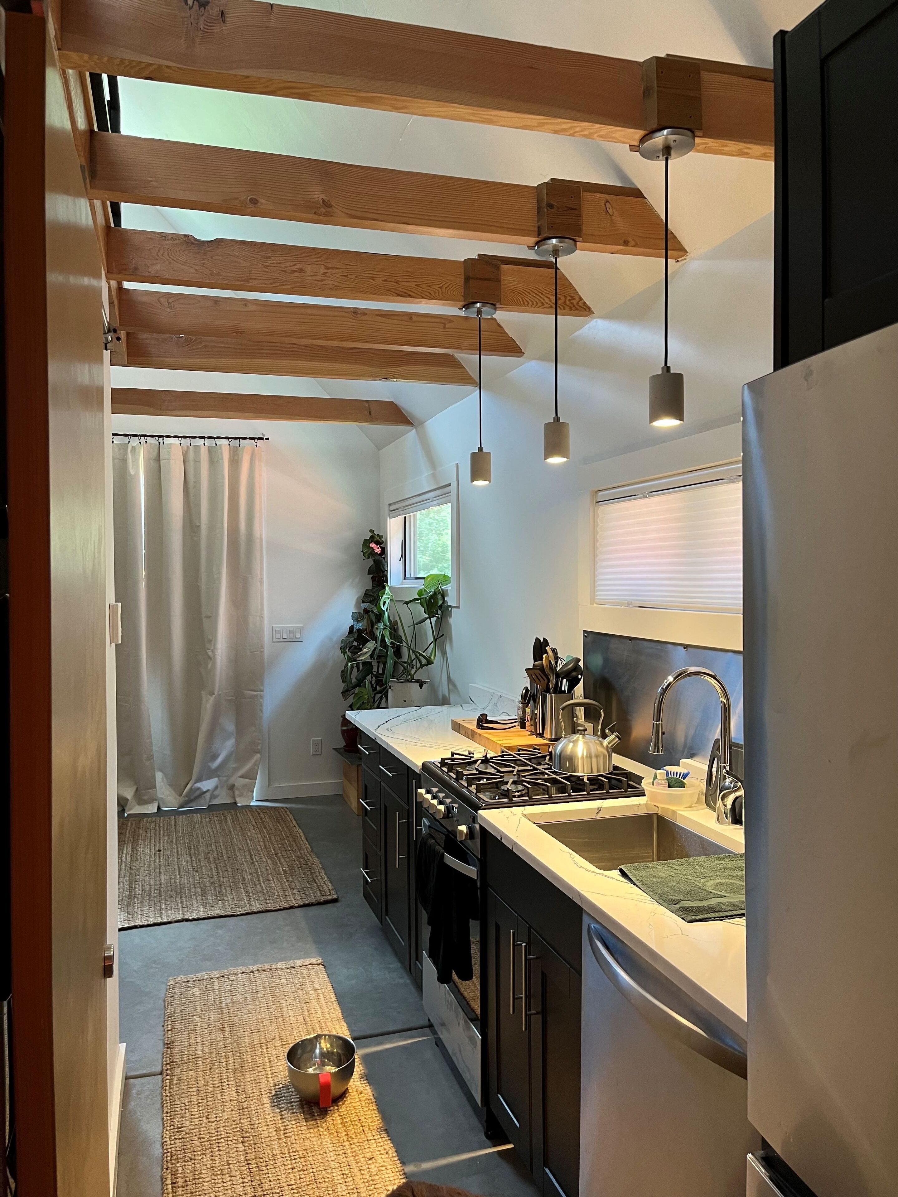 The upstairs loft features 3 single beds and a small storage closet, perfect for additional guests. Get your mountain climbing practice in with a steep set of stairs to access the loft. Great for kids but can be a challenge to navigate for people with limited mobility. Just be sure all adventurers use the handrail!