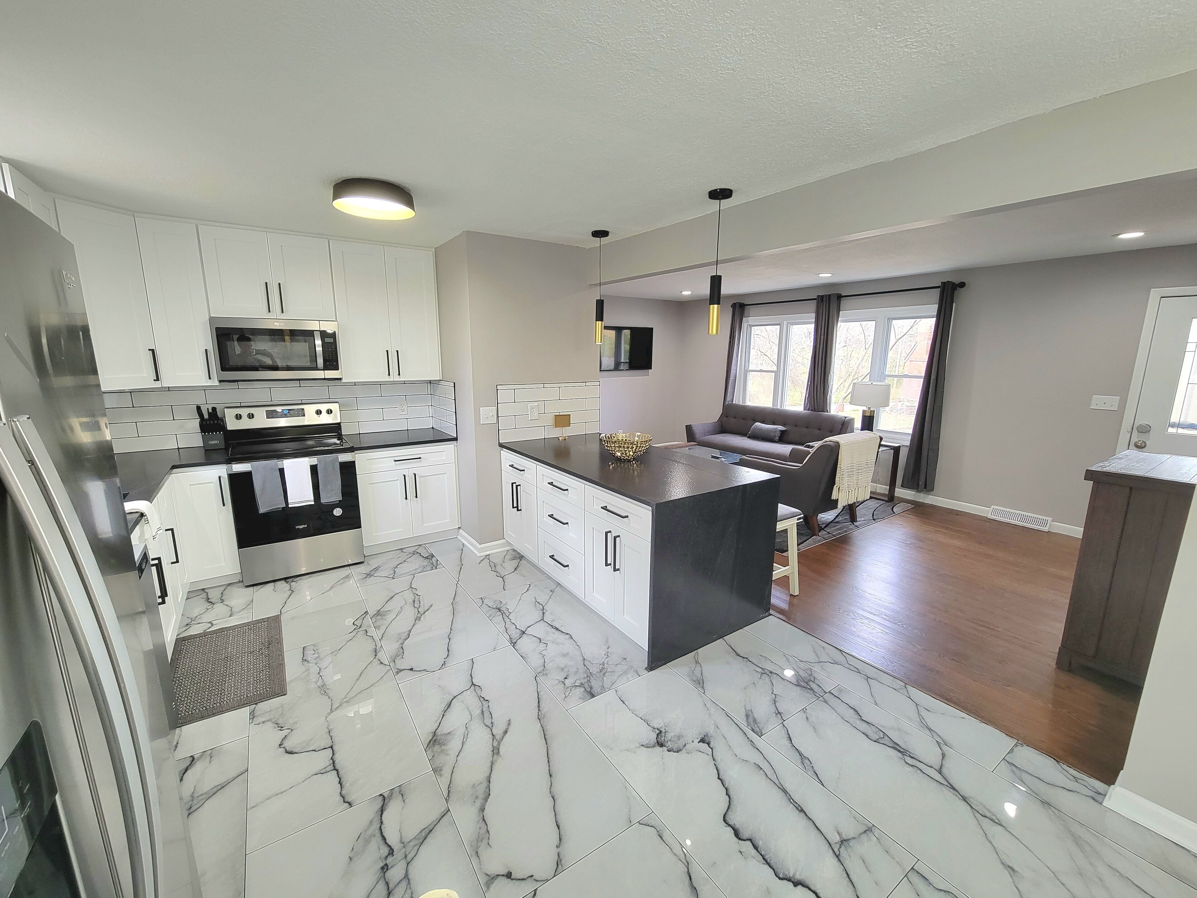 This is a newly renovated home with a large living room with open concept. Perfect for family get togethers and sharing a meal. Spacious backyard to enjoy S'mores around the firepit and a space for any furry family members.