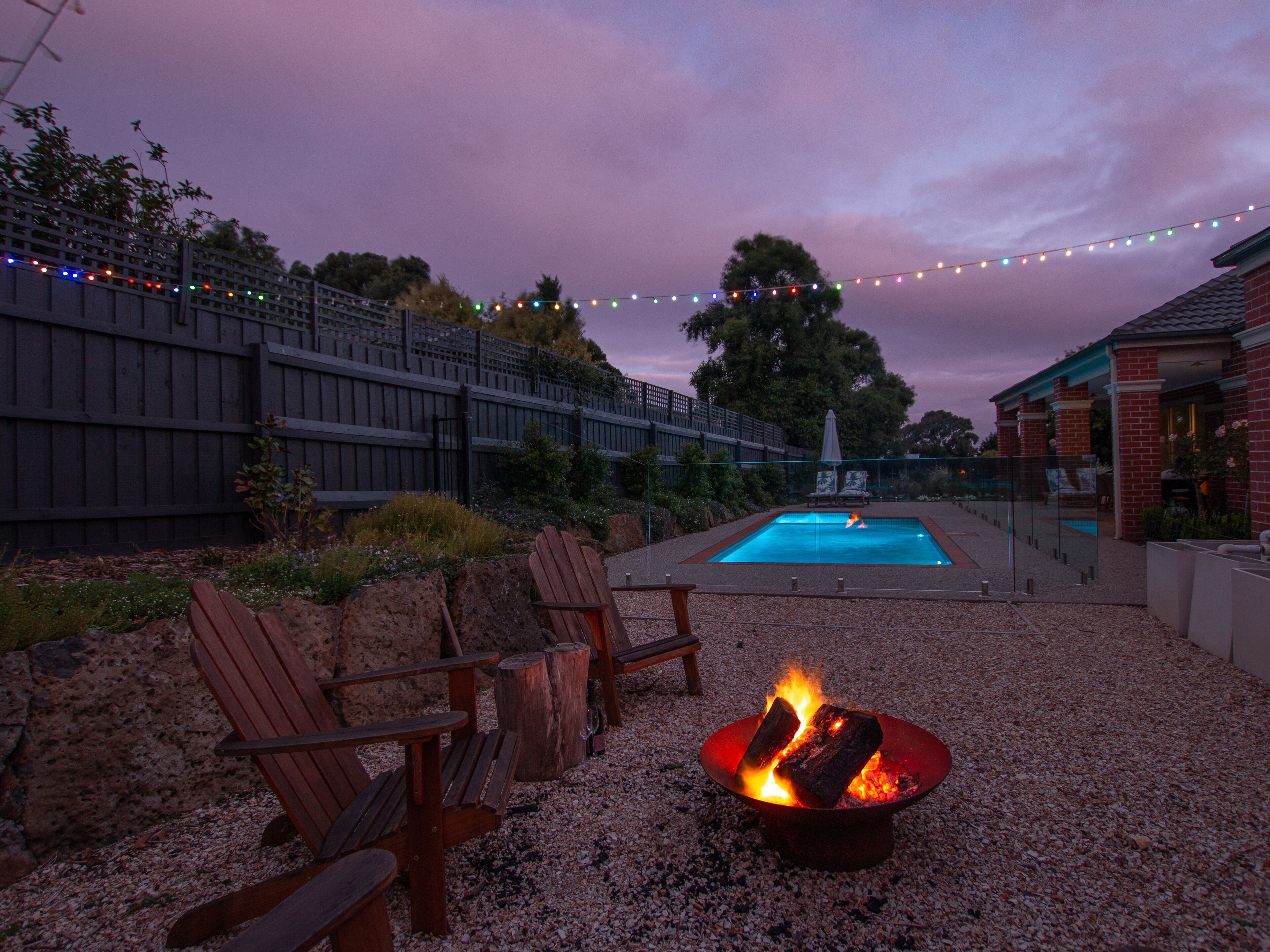 The backyard is the perfect space to dive into a book on the deck chairs, warmup in the spa, splash in the pool or snuggle up by the fire.