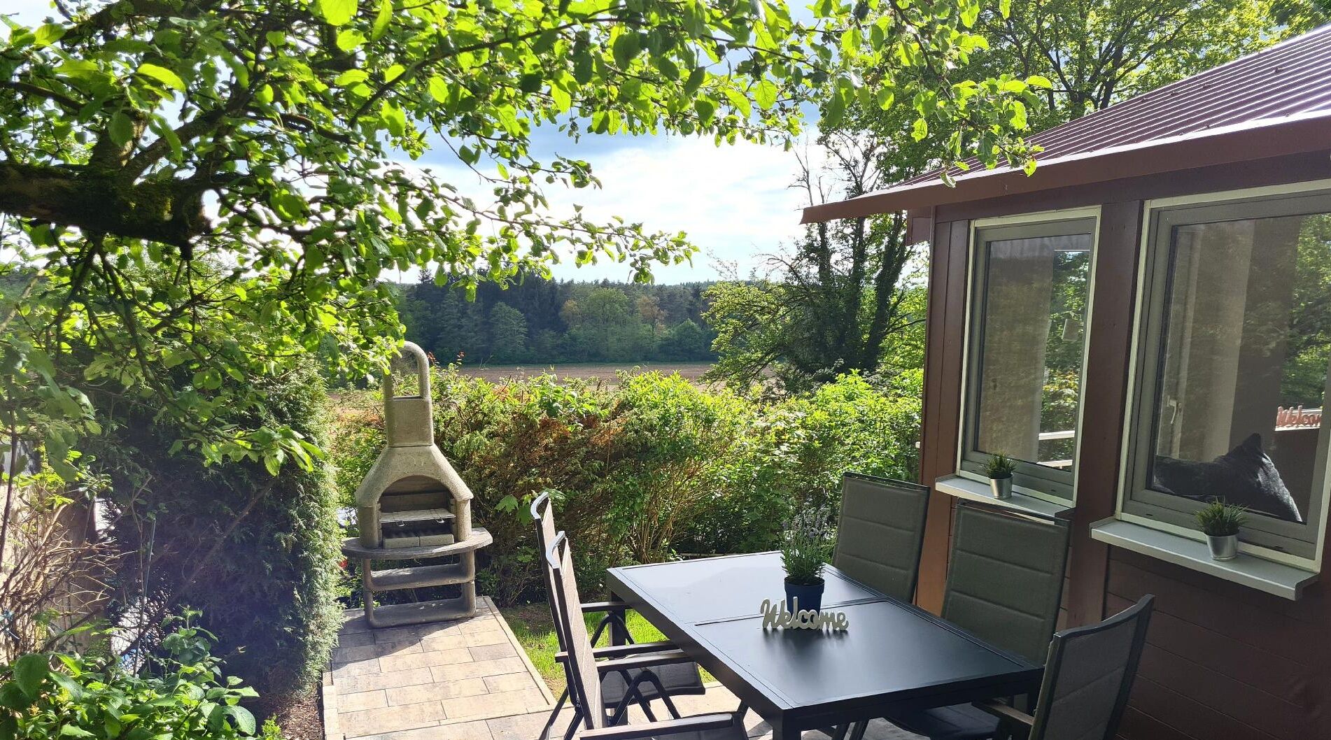 Our property is located in the south of the district town of Roth in a secluded location in the middle of the forest, but still very close to the city center, shops, triathlon area. Bus stop 500m away. The Brombachseeradweg leads directly, long-distance cycle paths nearby. The property is 6000sqm in size with a small fish pond, campfire area, keeping chickens, fruit trees.