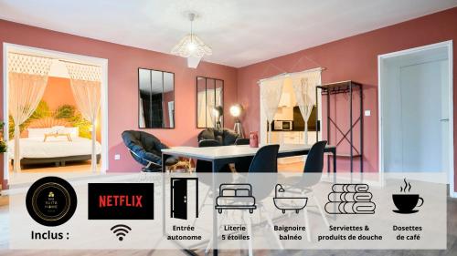 NG Prestige - Lille l Roubaix Trichon - Balnéo - Netflix - Wifi offers accommodations in Roubaix, 3 miles from Jean Stablinski Indoor Velodrome and 3.7 miles from Colbert Metro Station. The property is around 2.5 miles from Tourcoing Sebastopol Metro Station, 2.6 miles from Tourcoing Station, and 3 miles from Tourcoing Center Metro Station. The accommodation offers a hot tub, free Wifi throughout the property, and private check-in and check-out. The accommodation comes with a fully equipped kitchenette with a microwave and coffee machine, a flat-screen TV, and a private bathroom with shower. At the apartment complex, the units are equipped with bed linen and towels. Popular points of interest near the apartment include Roubaix National Graduate School of Textile Engineering, La Piscine Museum, and Jean Lebas Train Station. Lille Airport is 11 miles away.