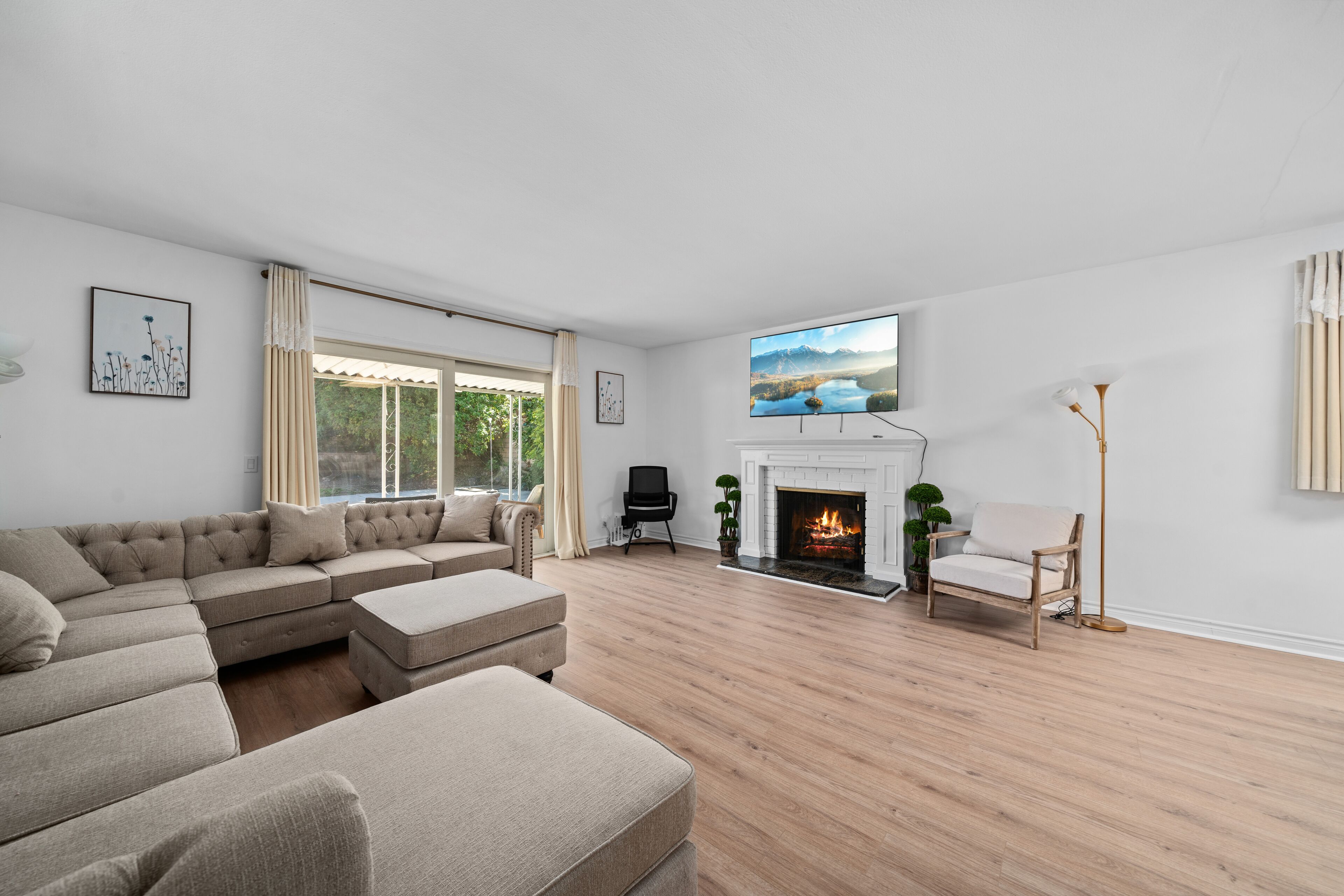 LIVING ROOM: 55" widescreen TV | Indoor fireplace | Board games