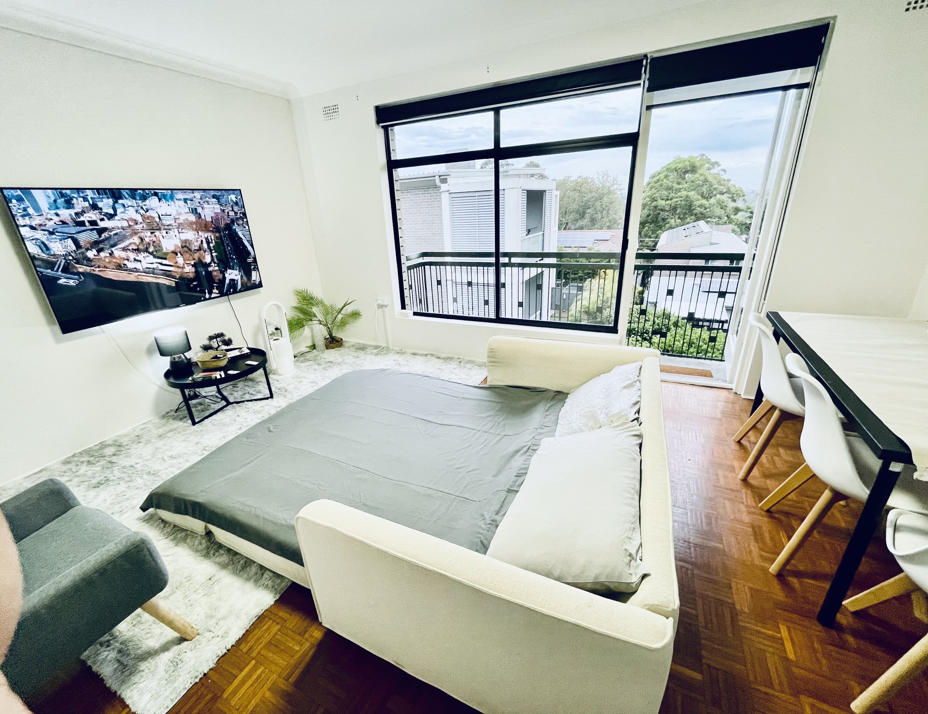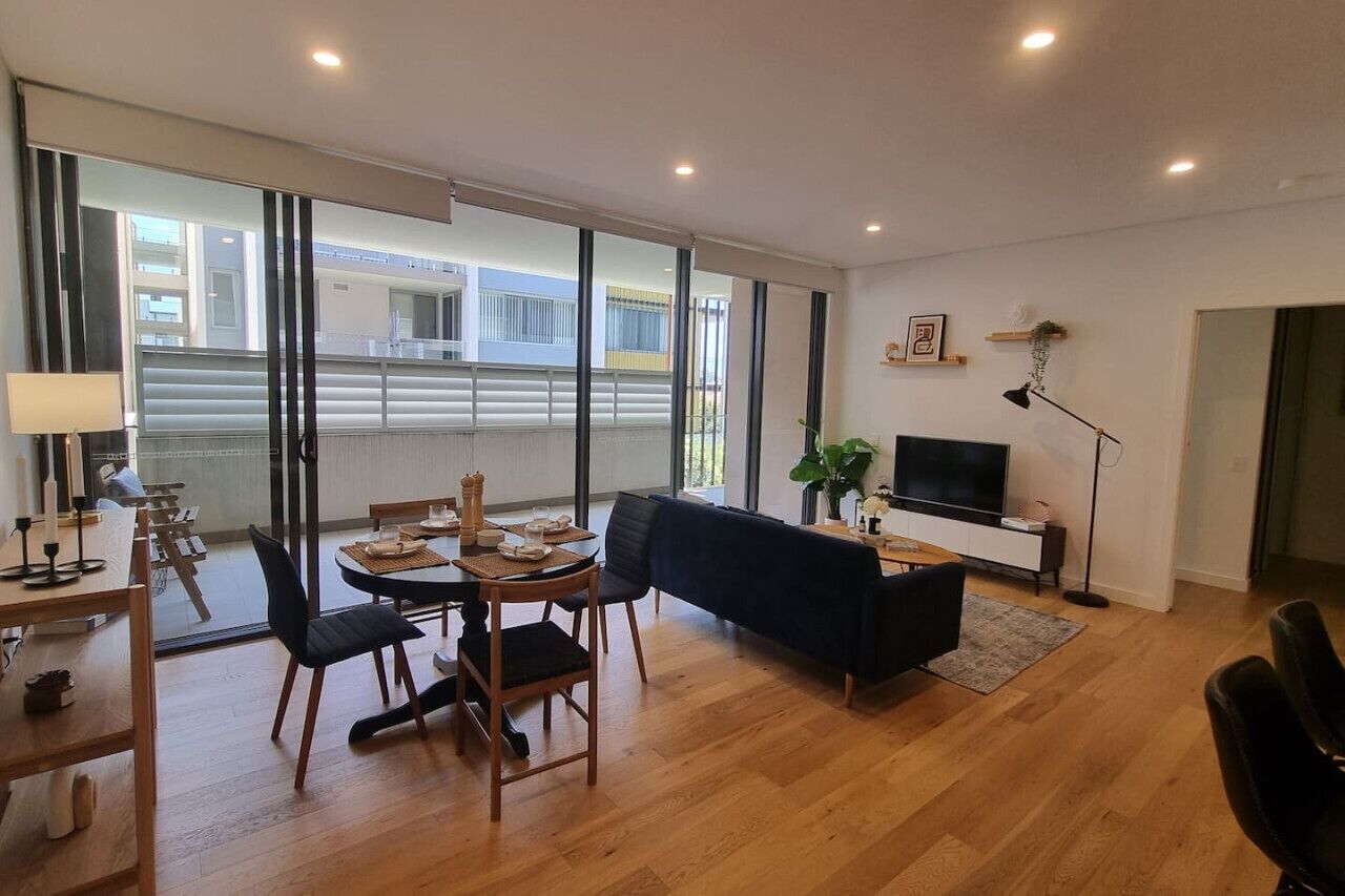 You can lose yourself for hours on the rooftop terrace. Taking in the glow of the afternoon sun as it highlights Sydney city — a mere 14km away. Whether your stay is defined by romance or business, winding down is made easy in this — very new, only four year old — apartment. A night-in could be as simple as a meal on the private balcony and a binge-watching session of your favourite show. Then, when you have a big meeting or dinner reservation in the city, the ferry and bus lines are moments from your doorstep. So, you’ll be at Sydney CBD, Parramatta or Macquarie Park in no time.