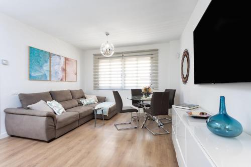 Maravillloso apto con vistas al mar en El Médano is located in Santa Cruz de Tenerife, just a few steps from Playa Chica and 8.6 miles from Golf del Sur Golf Course. Among the facilities at this property are an elevator and private check-in and check-out, along with free Wifi throughout the property. Staff on site can arrange a shuttle service. Offering a balcony and sea views, the apartment includes 2 bedrooms, a living room, flat-screen TV, an equipped kitchen, and 2 bathrooms with a bath and a shower. Towels and bed linen are featured in the apartment. This apartment is non-smoking and soundproof. Sightseeing tours are available in the surrounding area. A private beach area is available on-site and cycling can be enjoyed close to the apartment. Aqualand is 14 miles from Maravillloso apto con vistas al mar en El Médano, while Los Gigantes is 30 miles from the property. Tenerife South Airport is 2.5 miles away, and the property offers a paid airport shuttle service.