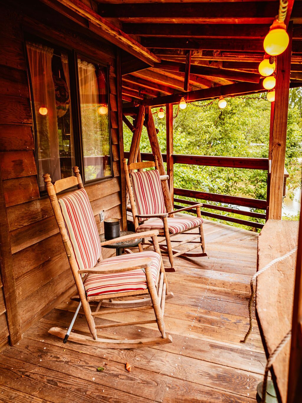 - Covered porch with swing, 2 rocking chairs, cafe table and seating for 2