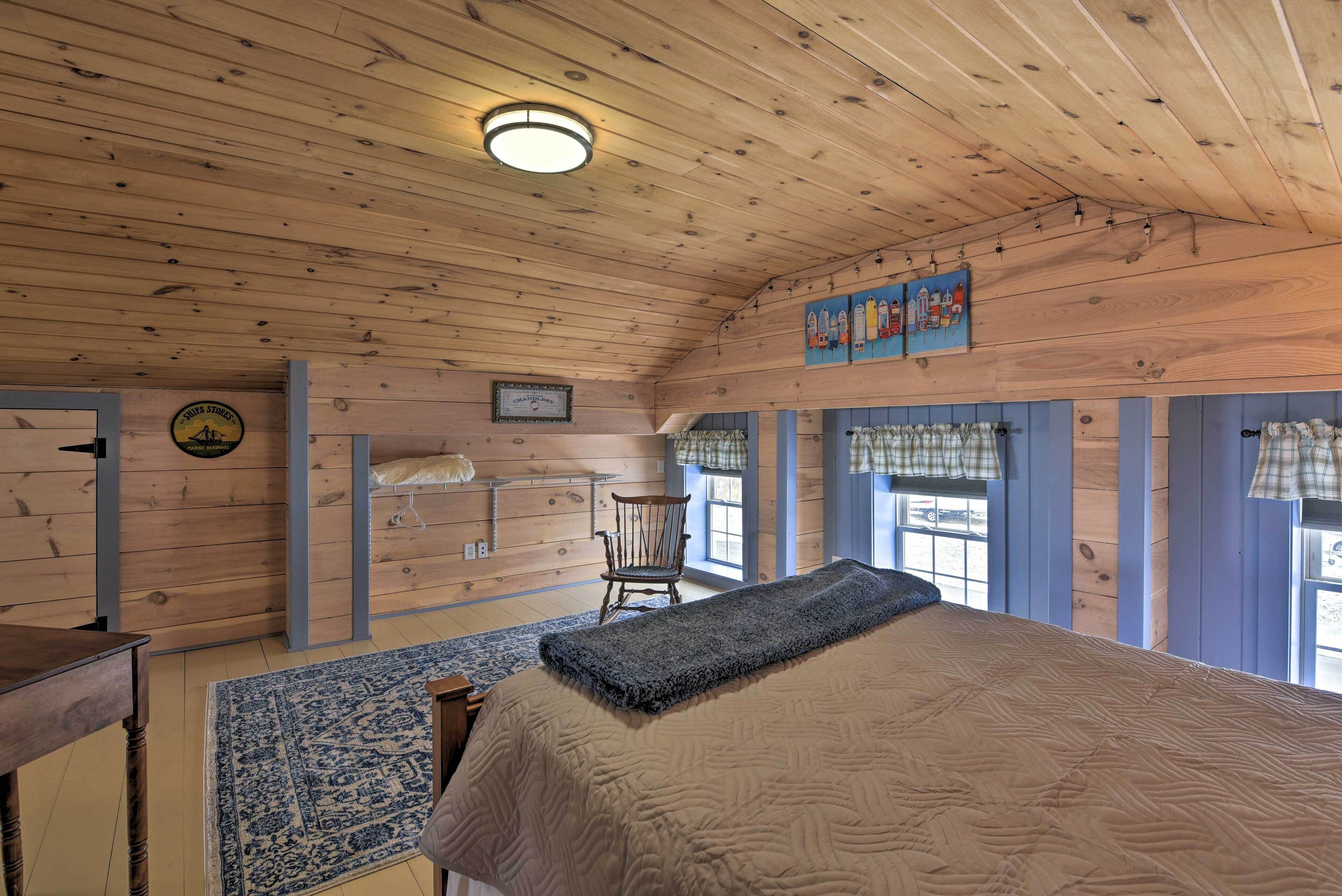 Get away from it all with this peaceful waterfront cabin. Offering access to WiFi and an intentional lack of TV screens, this 5-bed + bonus room, 2-bath escape helps families come together for quality time around the fire pit, dinner table, and provided board games. Check out Kill Kare State Park, that’s only 3 miles away, so you can sightsee or ferry to Burton Island State Park. If you love nature, this St. Albans Town retreat is the place to be!