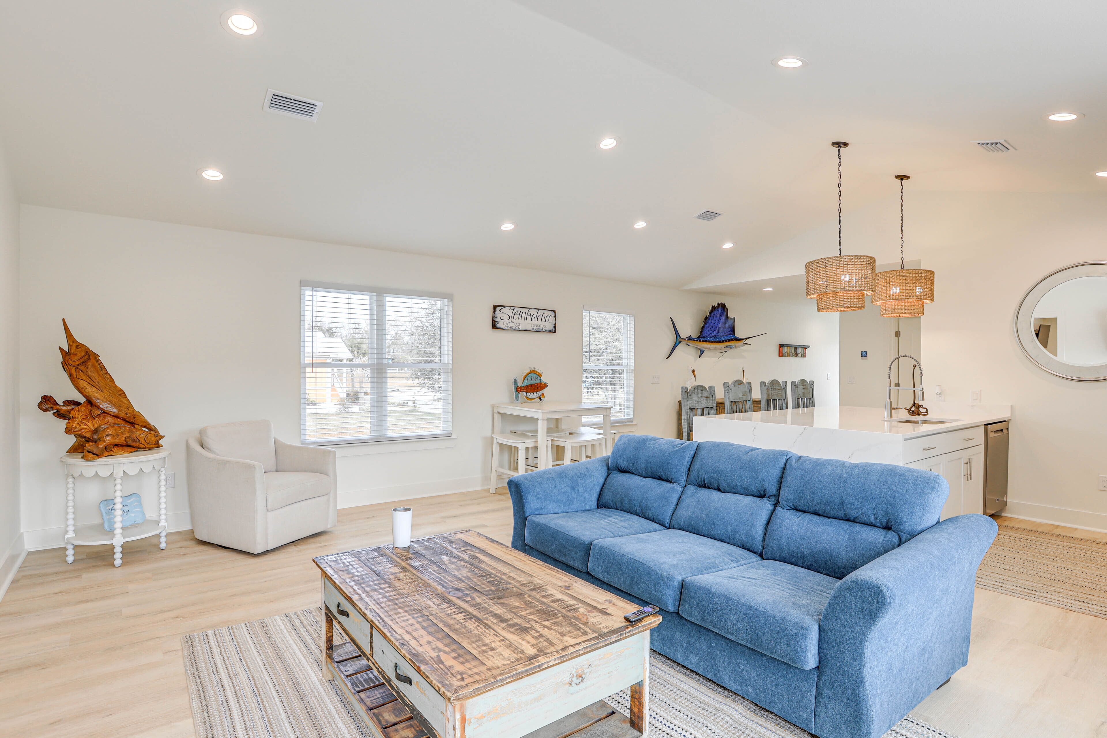 The Shells N Tails Rental home is perfect for fishermen or families looking for a relaxing vacation. Located on 1st Street W, this quiet and peaceful home is within walking distance of the boat ramp. The boat ramp is fully restored and operational. Be on the water in minutes after leaving the home.