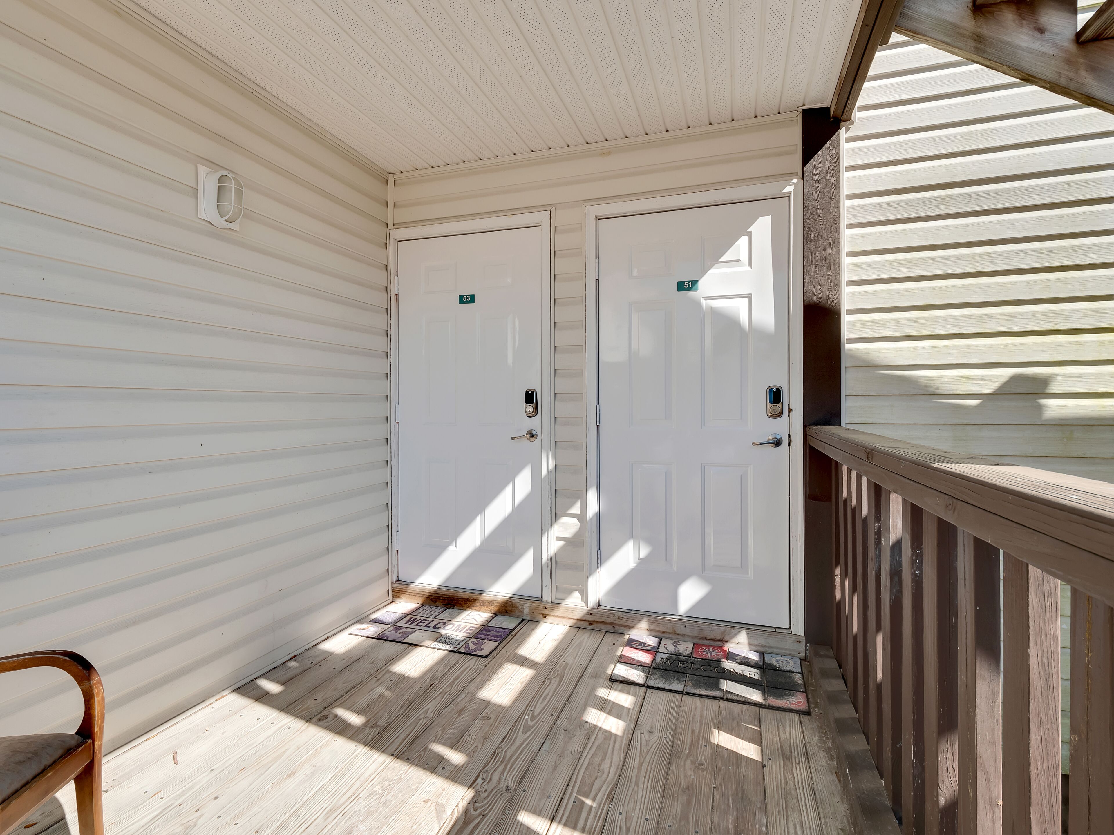 The Shells N Tails Rental is located in a quiet 4 unit complex. There are 2 homes in each unit similar to a duplex. The 1200 sq. ft. townhome is located on the left side of the green home in 205A.
