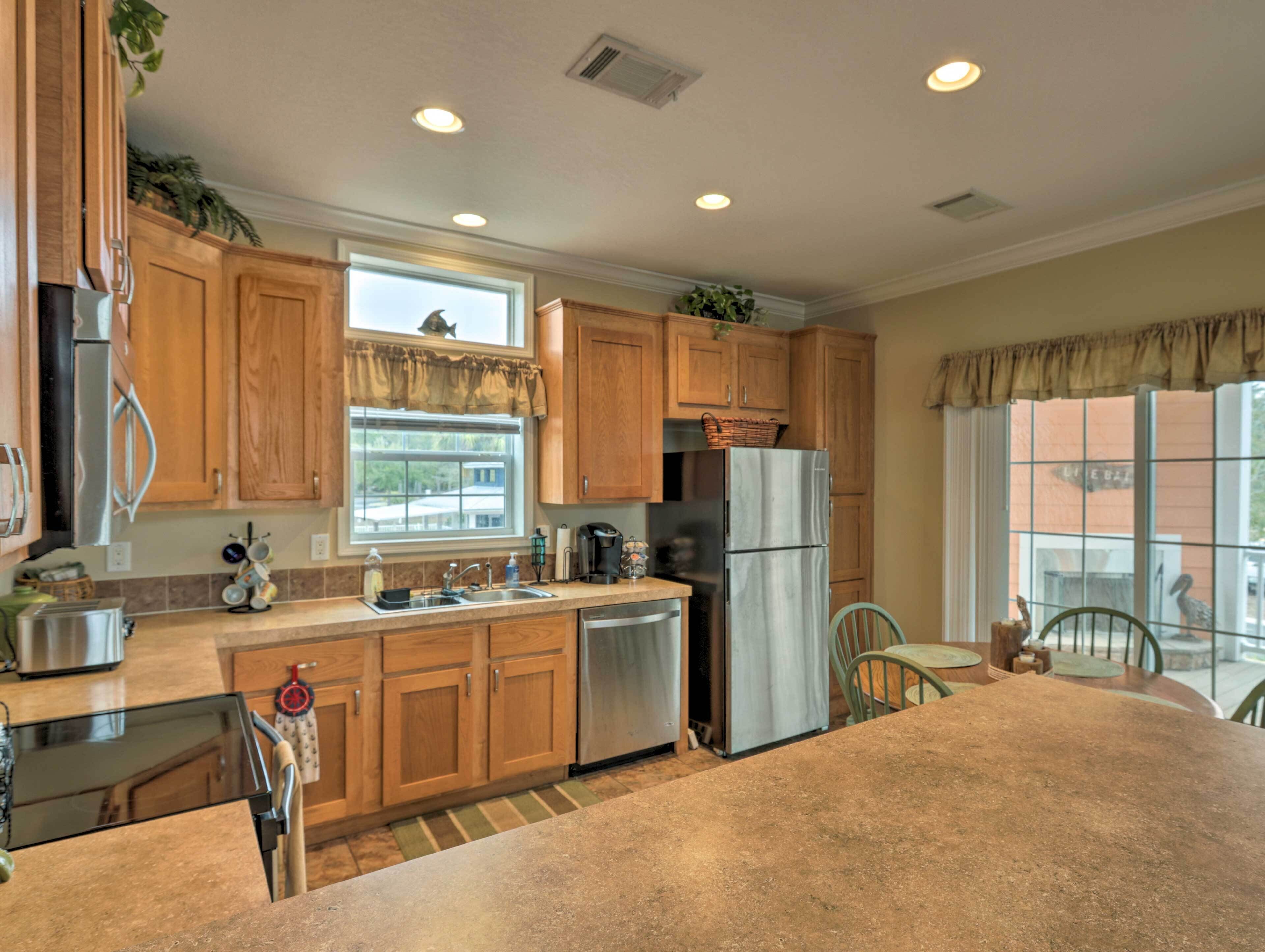 After spending a long day on the Gulf, cook or grill your fresh catch. Basic amenities are stocked in the kitchen. A propane grill is located on the back porch. Table and chairs are also located on the back porch in case you would like to dine outside.