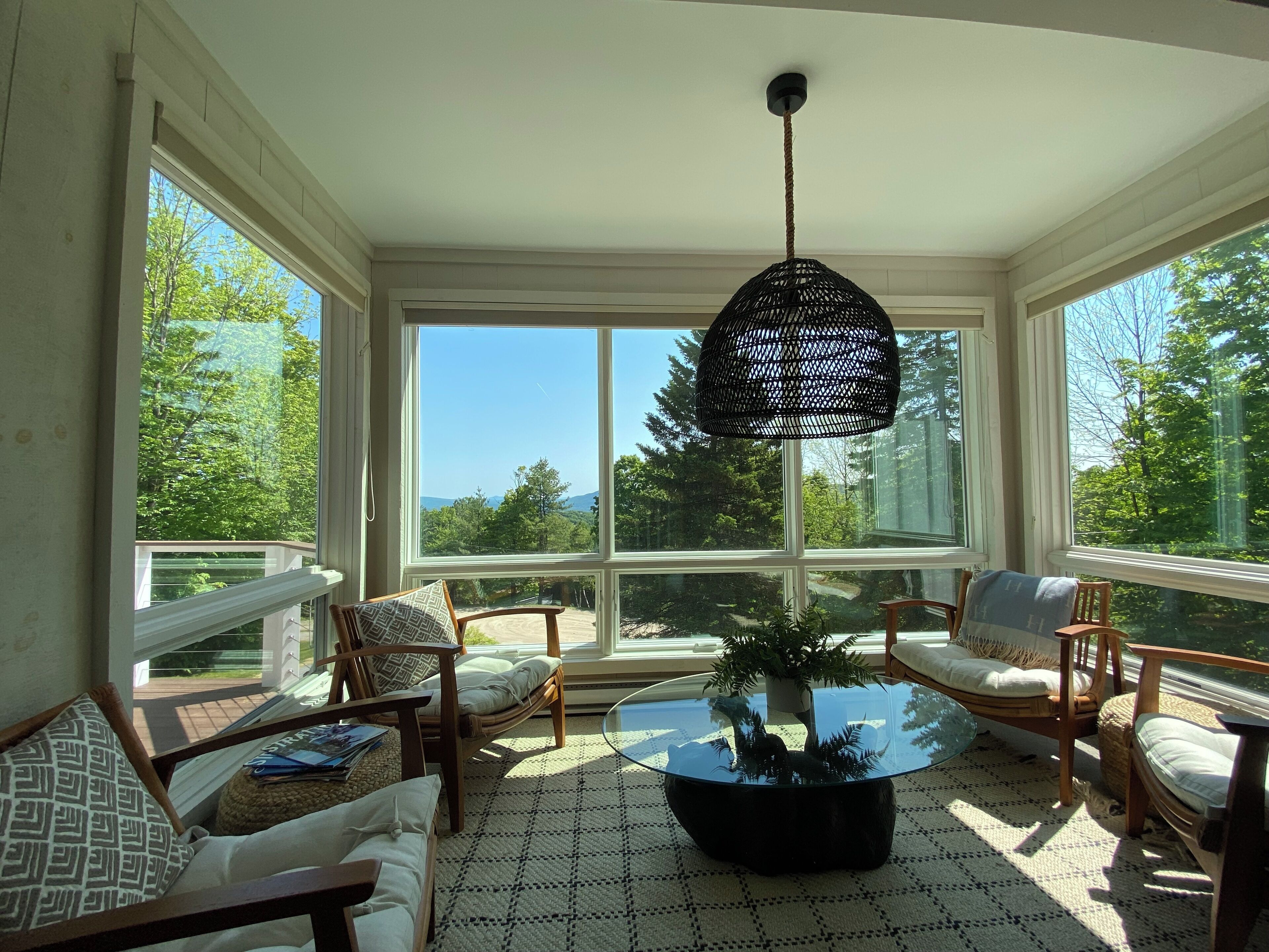 First floor- Curl up in the living room by the ultra modern fireplace with a good book or board game; open concept kitchen and dining room. Walk out deck with BBQ for dinner on the grill, and seating for a relaxing apres ski drink while enjoying the peaceful surroundings. Additional one queen bedroom and full bathroom. Mudroom for ski gear and storage, wifi setup, Smart TV's with gaming equipment, linens and kitchen supplies included.
