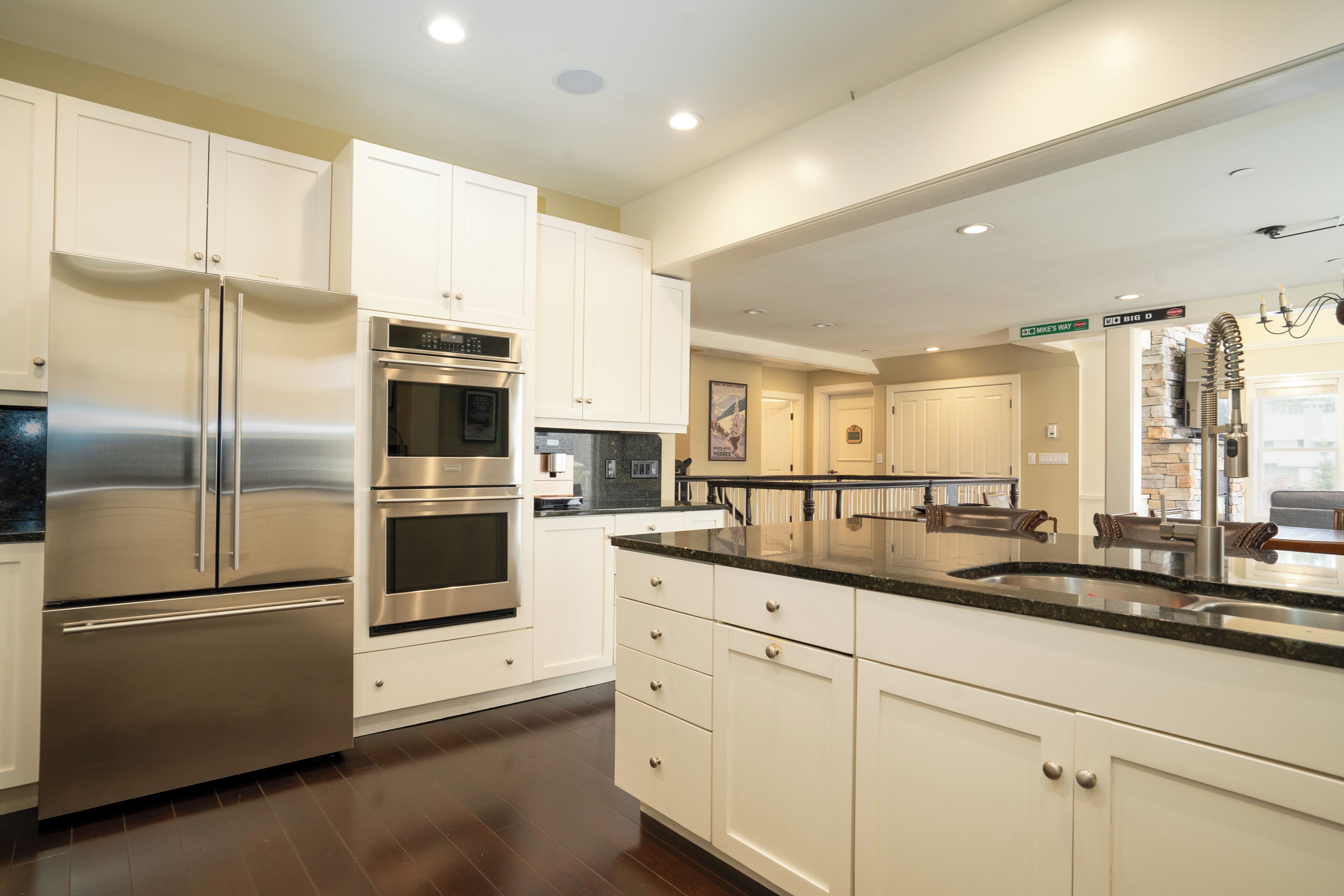 Kitchen: Granite counters, breakfast bar, 4 Bar stools, coffee maker, toaster oven, microwave,Viking Refrigerator and Freezer with ice maker