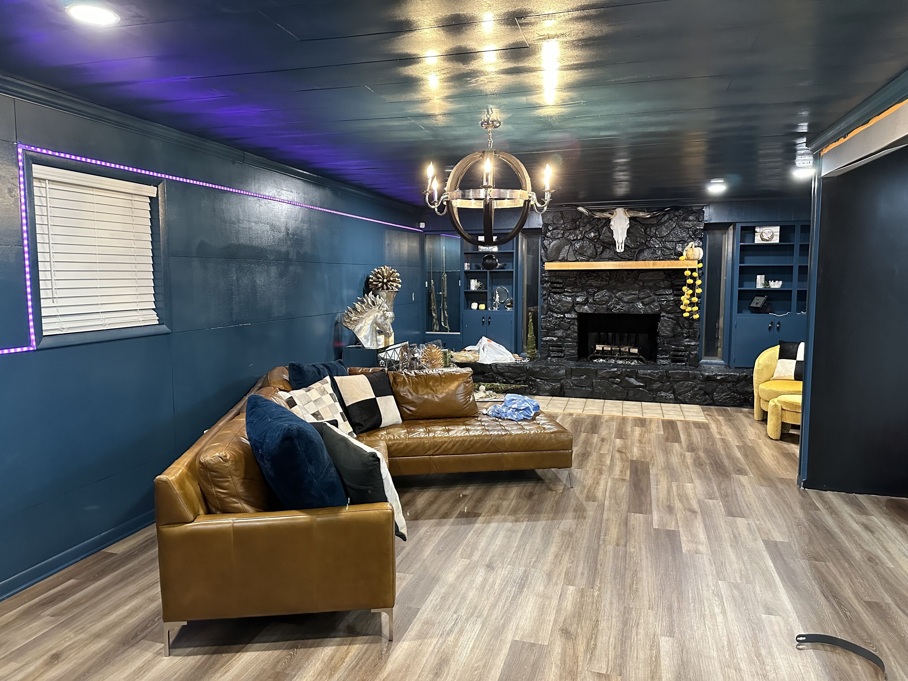 This lodge is close to town but outside the city limits. So you have a large yard but easy access to everything town has to offer. The house has everything you need from a fire pit to a pool table. 4 bedroom with 3.5 bathroom leaves plenty of room for everyone to spread out. The house has 12 beds only 2 of which are bunk beds so there are plenty of single beds in the house. The living room also has 3 couches so that everyone has plenty of seating room.