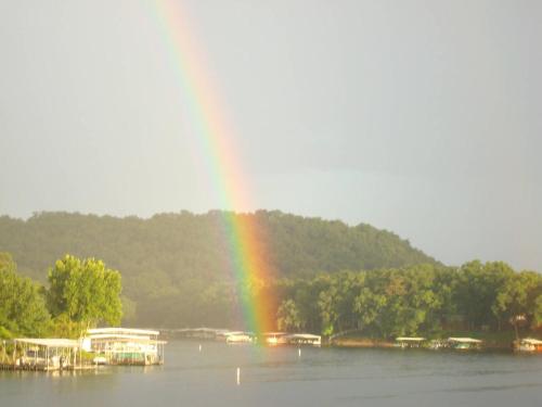 Come and enjoy this beautiful waterfront suite at the 38 MM on the west side of Lake of The Ozark’s. ( It is on the same property as my other VRBO Whiskey Barrel Bunkhouse) This is a one bedroom, one bath that sleeps six with a queen size bed and a hide a bed in the bedroom and a futon in the sunroom. It has great swimming in a no wake cove with lots of outdoor seating on and around a private martini deck. Enjoy the awesome sunsets from the mom-and-pop rockers on the side patio. Relax on the dock sitting area while taking in the cool breeze off the water. Take a soak in the private hot tub just outside the door off the martini deck and enjoy the Bear Bottoms Saturday night fireworks show. Fantastic views from every room and every outdoor area.