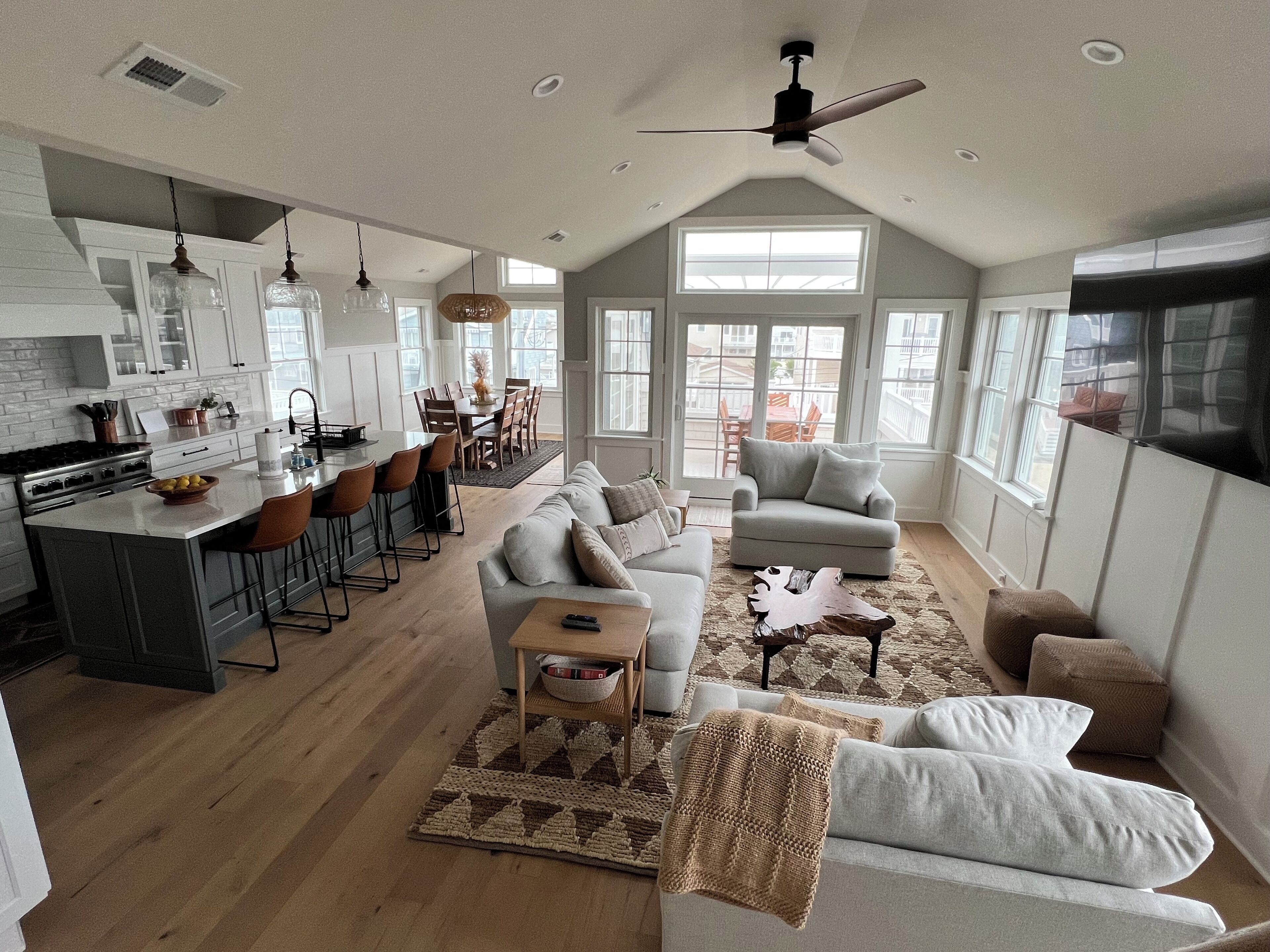 - "Spent a long weekend with the two youngest grands (3 and 7 yo): jam packed the days with oceanside fun, mini golf (Flamingo Golf and Jenn’s), playgrounds and hiking at old Barney. Took the weekend off from cooking/barbecuing thanks to Boulevard Clams, Panzone’s, Mustache Bill’s, Off the Hook, Barry’s, How You Brewin, and, of course treats from Marvel’s and Skipper Dipper. (No worries though for those opting to cook/barbecue: home has a lovely and large renovated kitchen!) 25th St. pedestrian crossing light made trips to the beach fast and safe. Watched the sun set and met the neighbors at the bay just around the corner. Luckily the weather was magnificent, but if not there’s a sectional couch big enough to hold the whole family! More ++s: newly renovated bathroom with a great shower; roomy outside shower; oversize washer and dryer; huge, comfy backyard hammock"
