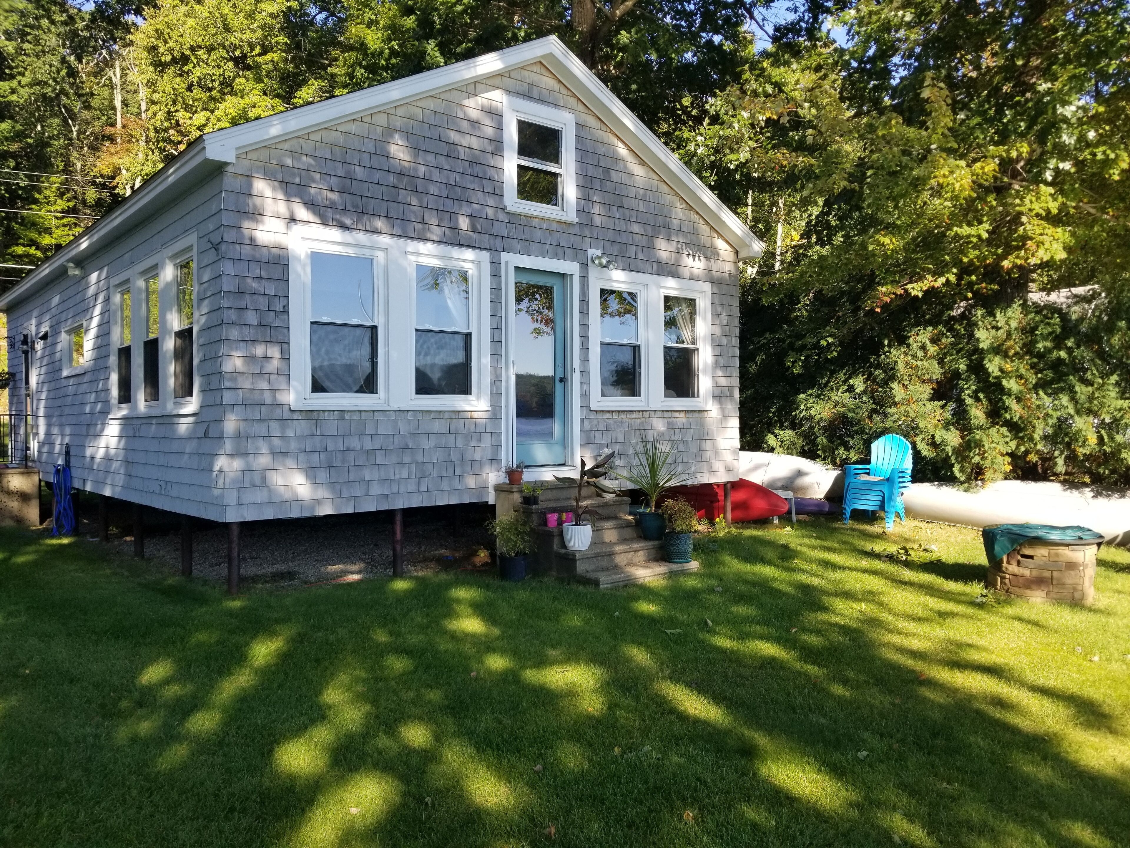 Direct waterfront cottage with beautiful lake view. Begin your day with an amazing sunrise, then water activites, and evenings around a firepit. Located close to the Douglas state forest and infamous Purgatory Chasm with miles of hiking trails. Central MA location with many sites and things to do with in half and hour, or just chill and enjoy !