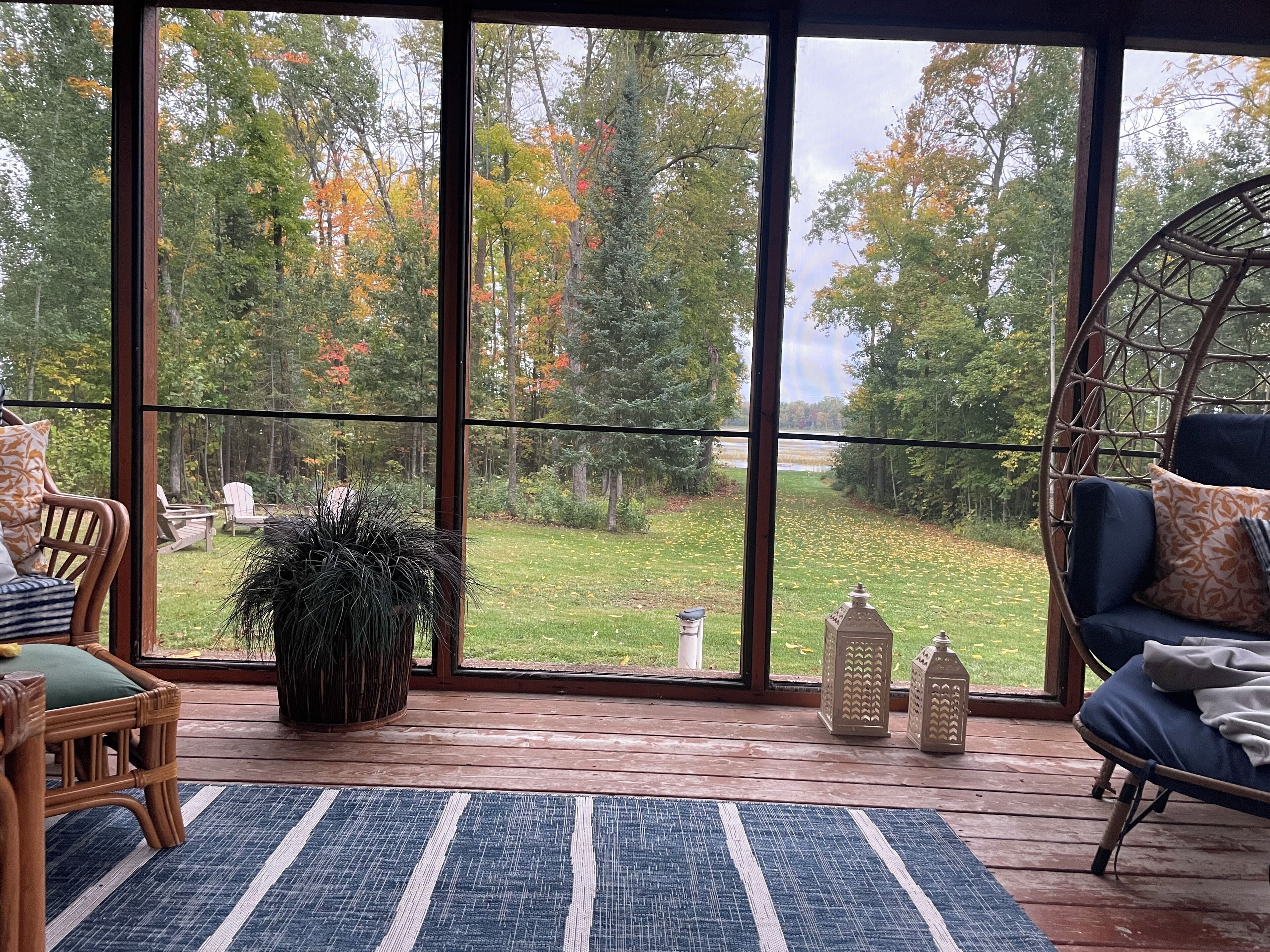Three season porch with lake views, game table and daybed