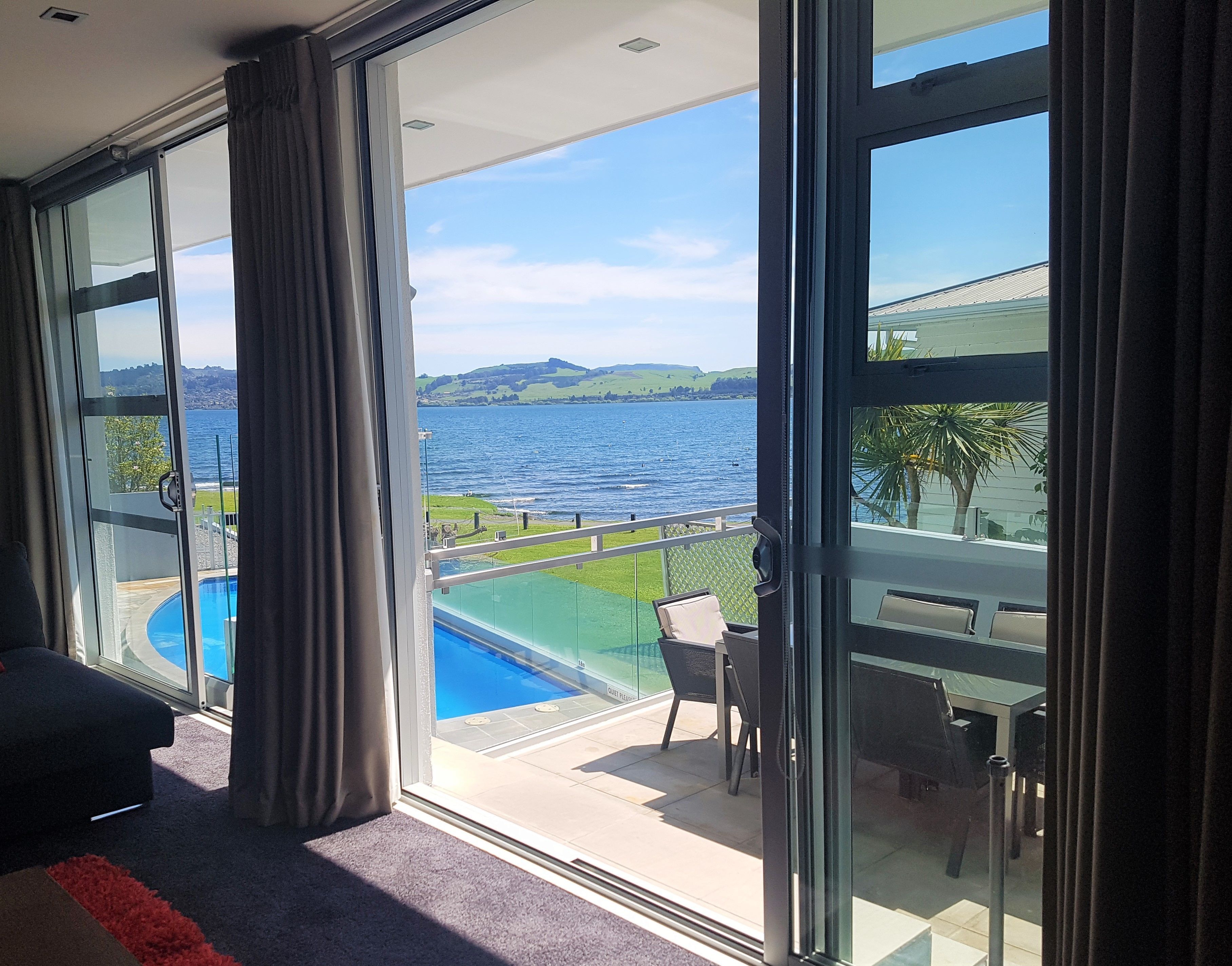 - "Breathtaking views of the lake. " - "Very spacious, quiet with nice walks along the seafront " - "Great accommodation, friendly staff. Perfect for a weekend away. " - "Loved the waterfront location and it was close enough to walk into Taupo. We enjoyed the pool and the hot tub was awesome! " - "Our suite was very spacious and room for the 4 of us with 3 bedrooms and 2 bathrooms. The kitchen and bathrooms were very modern and all was very clean. The pool was nice and the boardwalk was right in front of the property. It was a short drive to town so very convenient. "