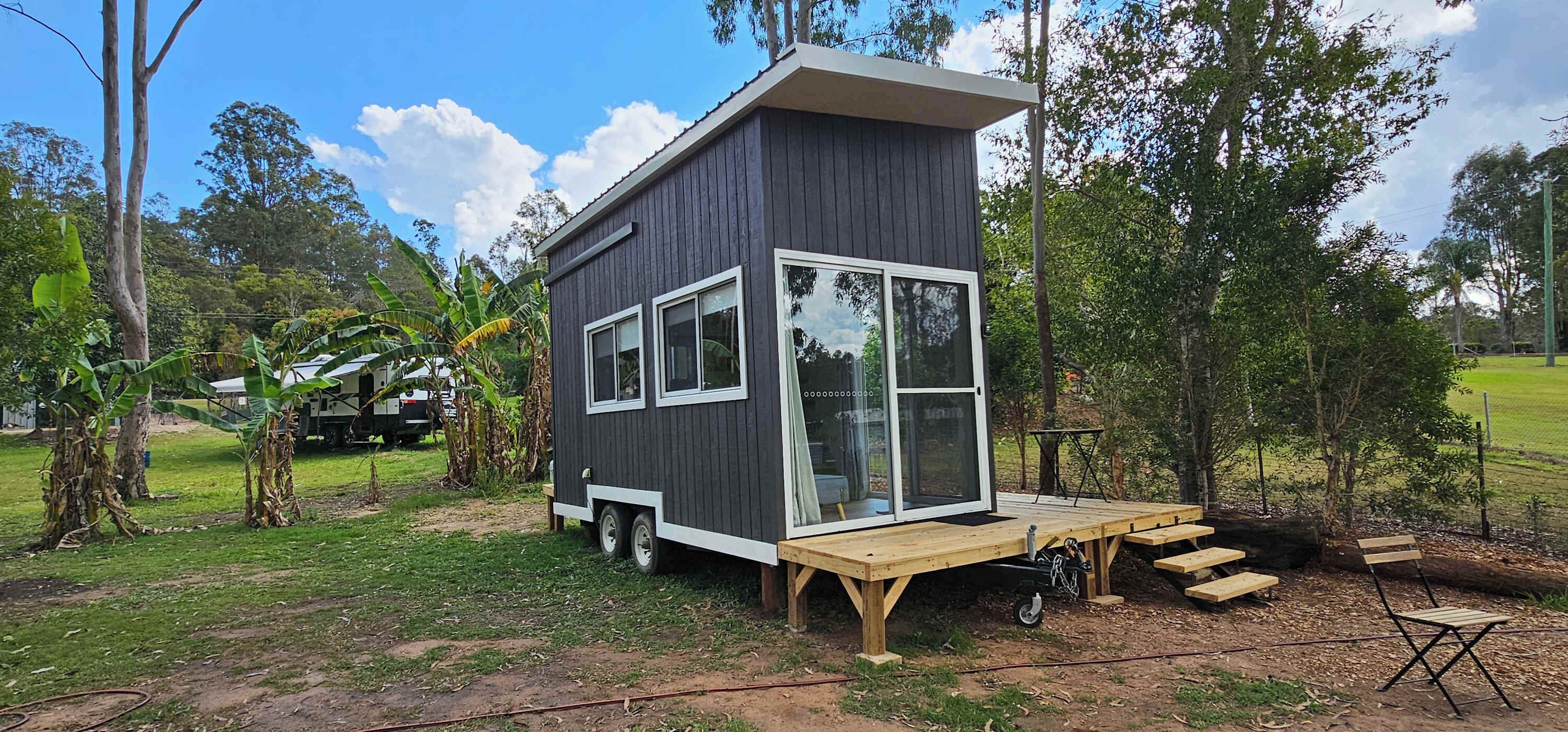 Hidden Camps Tiny Loft House by Tiny Away is the perfect farm stay QLD retreat in Pie Creek, just an hour from Brisbane and 35 minutes from the quiet suburbs of Cooroy. While Cooroy has supermarkets, restaurants, and parks, our cozy tiny house isn't far from the relaxed charm of Noosaville. Families love it here for safe swimming and a friendly vibe.