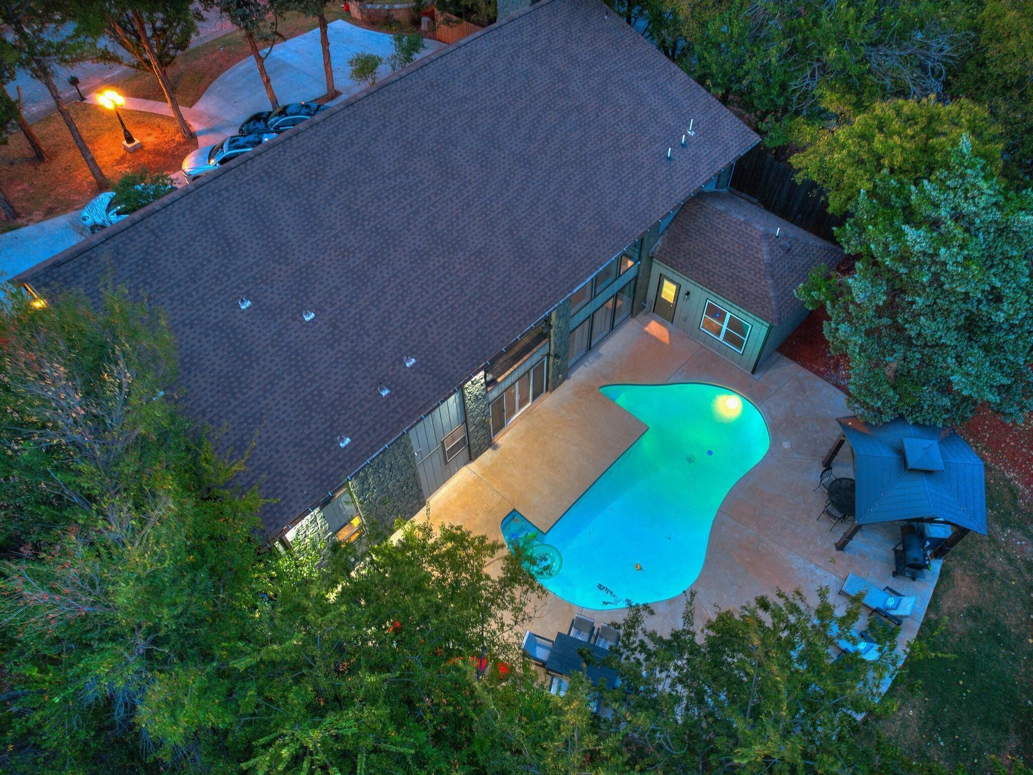 With plenty of space for everyone to relax and reconnect, this home has a unique floor plan with 8 (eight) bedrooms (Containing two master suites & 13 (thirteen beds), 3.5 bathrooms, 1 living area, one game room, an office, a wonderful open chef's kitchen with countertop seating and extra-large island. This home features luxury finishes throughout, from the counter tops to flooring to lighting and fixtures, and includes added features such as two wine refrigerators, a wet bar, a built-in sauna, balcony, pool, Indoor HOT Tub room and outdoor kitchen. In addition, this stunning home is on an over-size, water-front lot with mature trees and beautiful views.