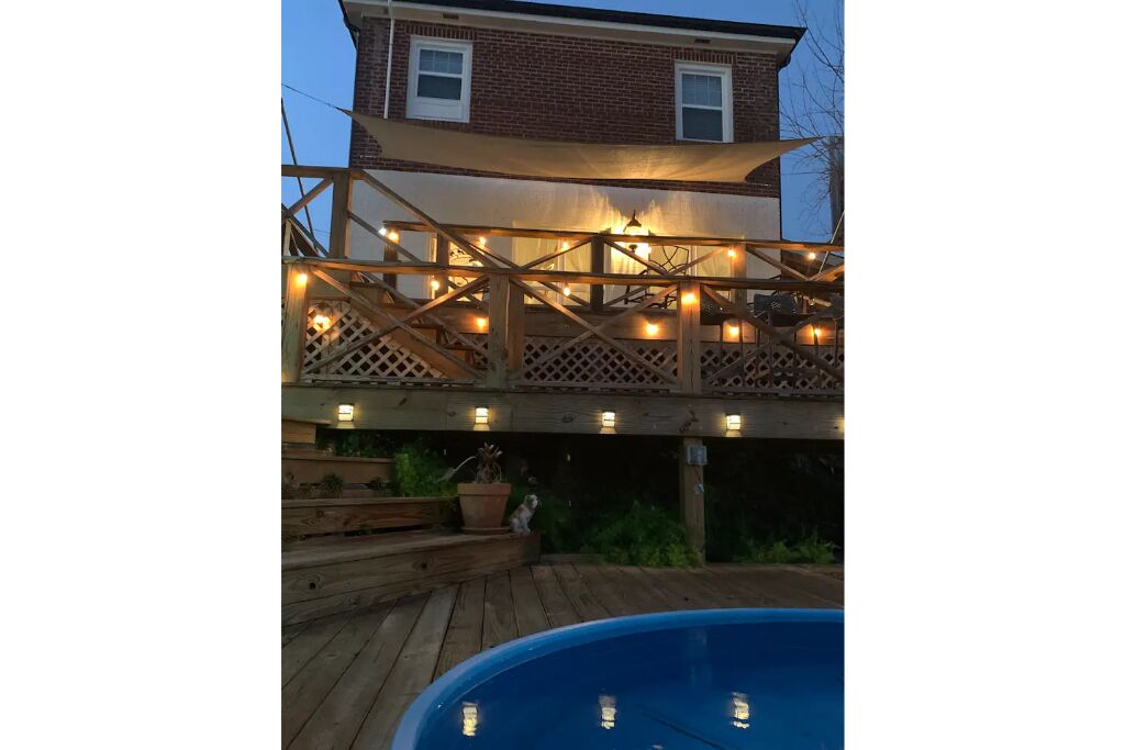 Guest can enjoy a large back yard with a covered patio hammock dining area BBQ grill. Inside of the home guest have the convenience of a washer dryer and fireplace. Enjoy some music on the alexa or just relax and watch TV. If your stay is work related there is a workspace upstairs as well as a play area for the kids.
