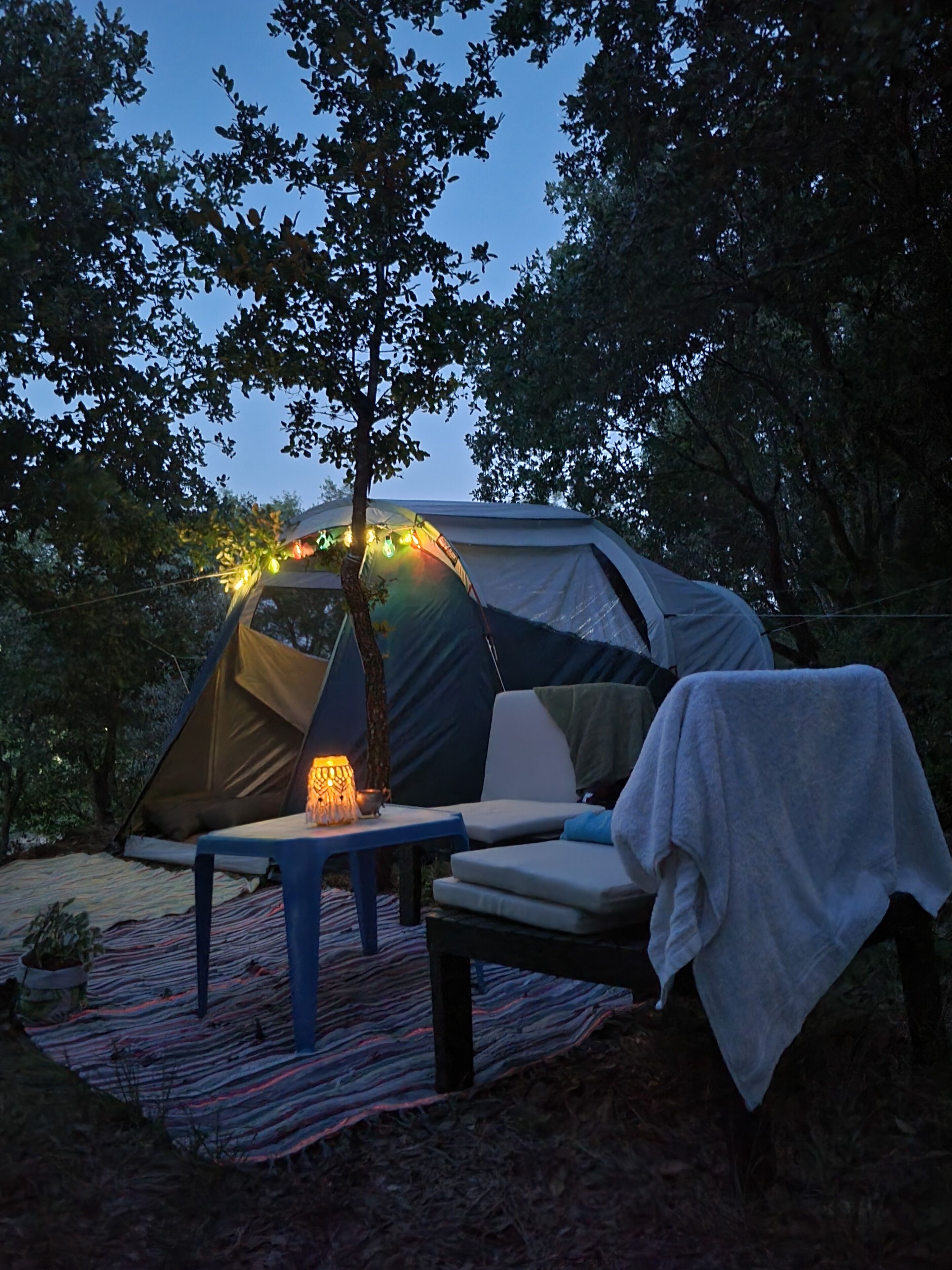 Each bungalow is a wooden cabin, open space style, with a living room, double bed on a mezzanine (access via stairs), a sofa bed, bathroom, kitchenette equipped with basic utensils for preparing breakfast or small dining and outside there is a balcony overlooking the land. Located in a small forest with Mediterranean characteristics, with all its imperfect beauty, it is a rural space with no commerce in the surroundings, but it is only a 5 minute drive from the city of Tomar (or around 1 hour walk along nature paths). Tomar, a city enriched by its imposing Convent of Christ and Castle flanked by the Sete Montes National Forest and with a beautiful historic center, with monuments, churches, the river and gardens. The river beaches are also a reference in this region in the summer.
