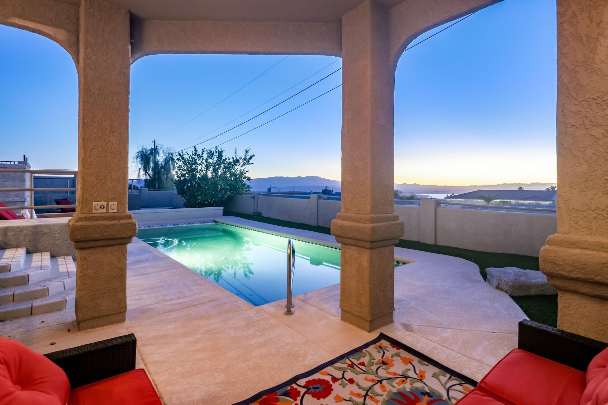 Welcome to La Vida Havasu, quite literally, The Havasu Life! This property is astunning newly remodeled desert retreat with all of the amenities. This fully furnished home is a family vacation destination! Enjoy the private backyard day and night. Cool off in the sparkling pool or stay toasty warm on cool evenings, snuggled up by the outdoor firepit. This amazing backyard includes a built-in Natural Gas BBQ, griddle, bar refrigerator and an outdoor TV so you never have to miss a moment. The driveway has plenty of parking for you to store your boat after a day on the lake! Cheers to good living in Lake Havasu City!The pool can be heated for $60/night.