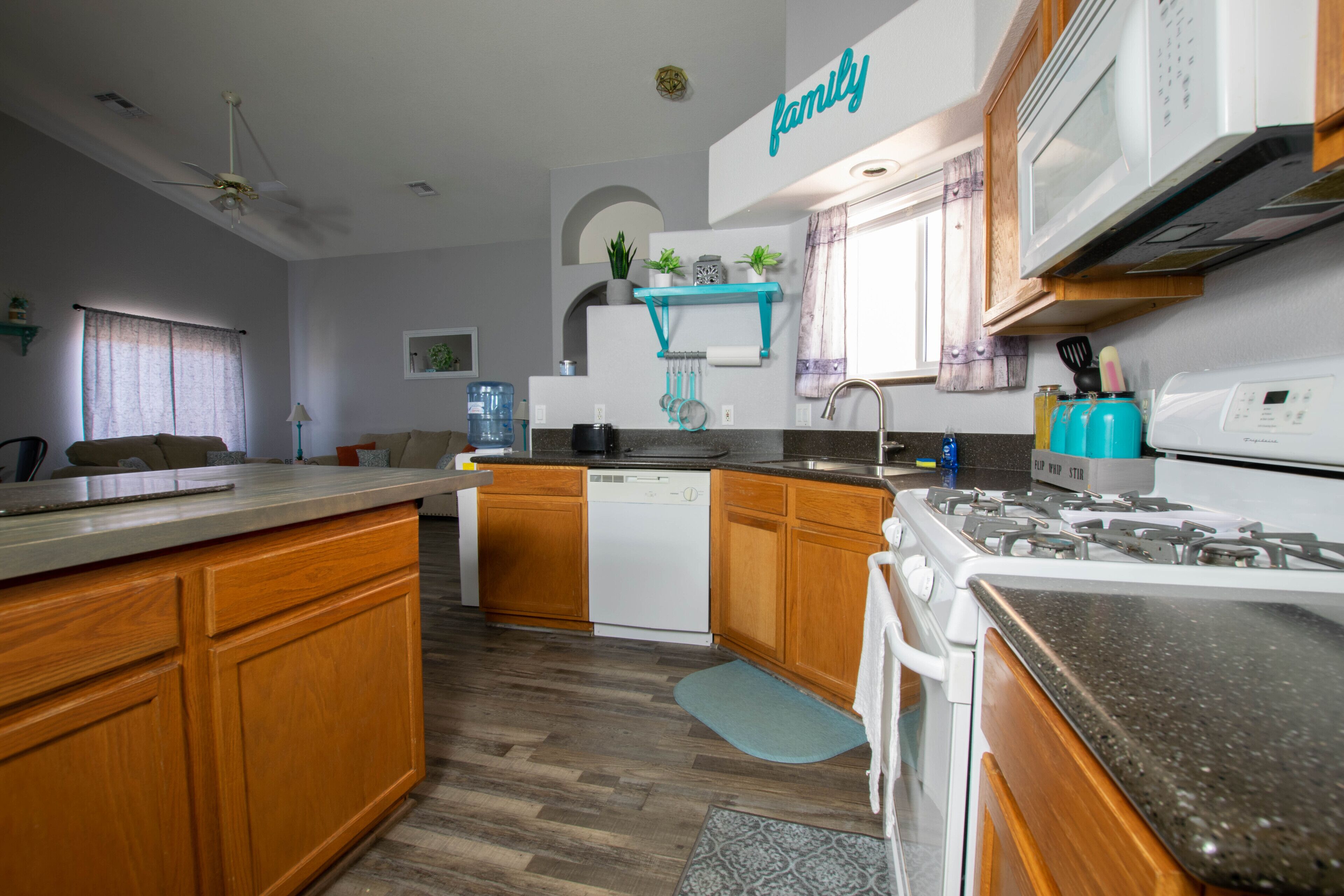 Our chic home features an open floor plan that is well appointed throughout with allbrand new decor. Everything is set up perfectly with everything you need to make this the ideal home away from home. The great room includes a comfortable sitting area for binging your favorite show. The couch folds out into a Queen size bed for your extra guests.