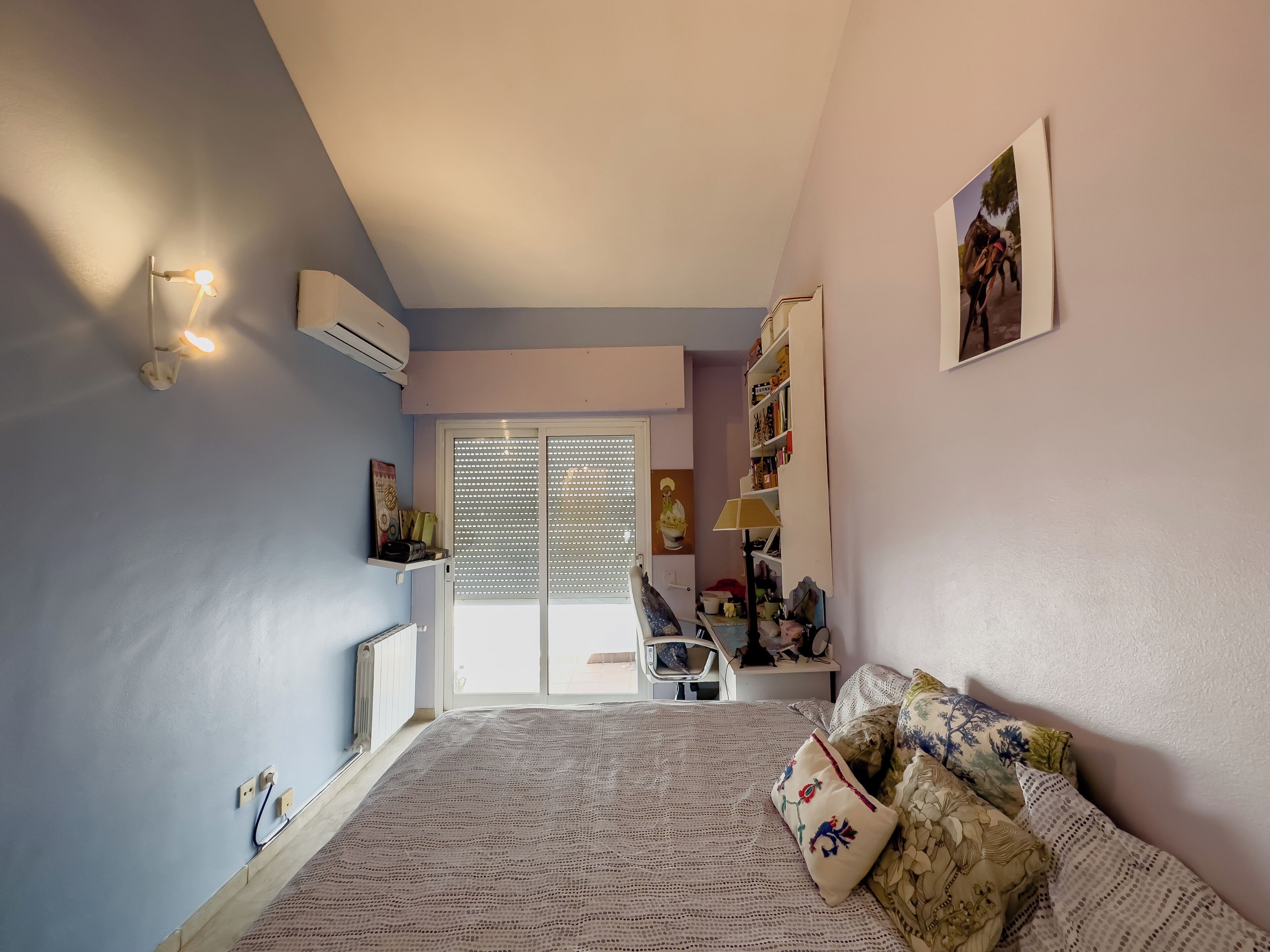 -Bedroom 1 (main): hall-distributor with access to the bathroom and bedroom, double bed 160 cm, TV, desk, chest of drawers, sofa, armchair and two bedside tables, (you can include a bed or cot).