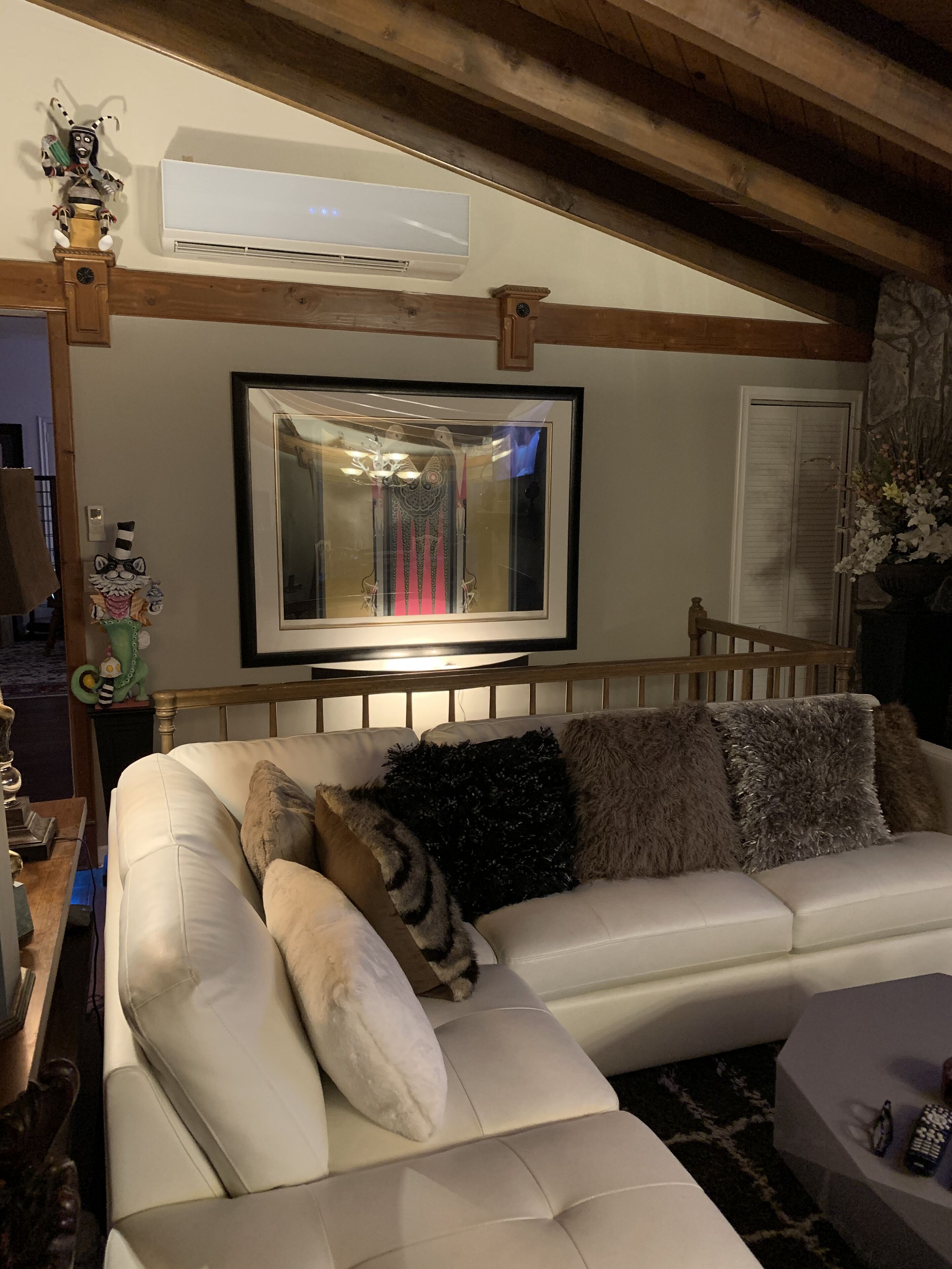 There is no central AC in the home, we use fans, attic fans and the summer breeze. Be advised when booking July-September 15. Two AC units are located in house/main living area and master bedroom.