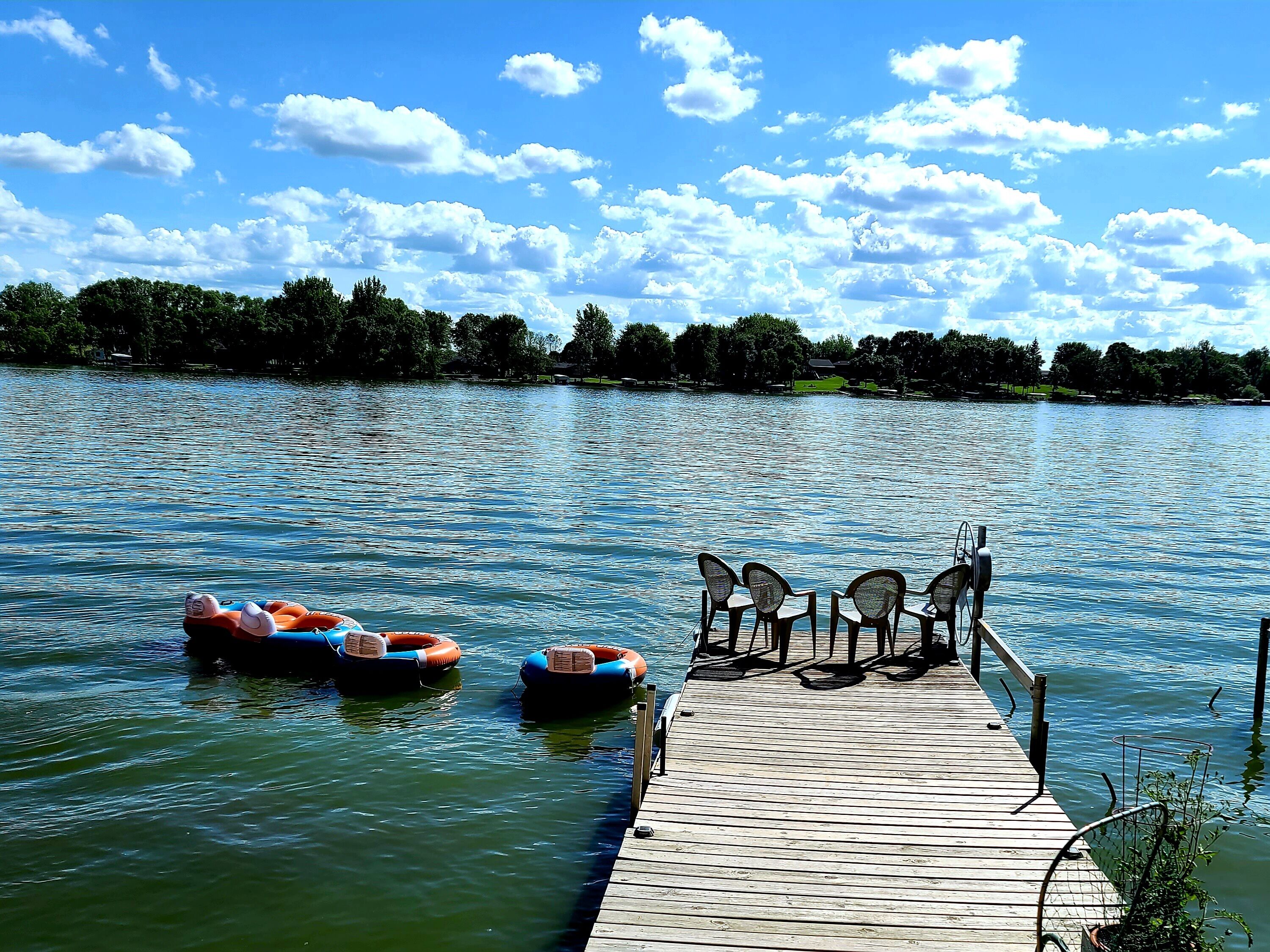This enchanting property is perfect for families or groups of friends looking for a comfortable stay. Whether you're relaxing in the living room by the cozy fireplace, or enjoying the view of the lake or the beautiful sunset on the private lakefront deck, this house has everything you need for a memorable getaway. Complete with fishing, swimming area with sandy bottom, life jackets, Lilly pad, tubes, floating inflatables, mats, noodles, outdoor gas fire pit, lawn chairs, grill, indoor fireplace, dock access, yard games and optional boat, boat lift, pontoon and bike rentals, we look forward to hosting you at our place.