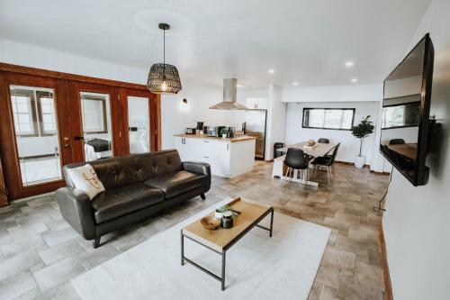 HEATED floors, QUARTZ COUNTERS, NEW appliances, Apple TV: Netflix, 60 Mbit WIFI, 58-inch television. On site: Kitchen essentials and more: Teas, herbal teas, coffees (Keurig+Coffee maker). Friendly neighborhood :)