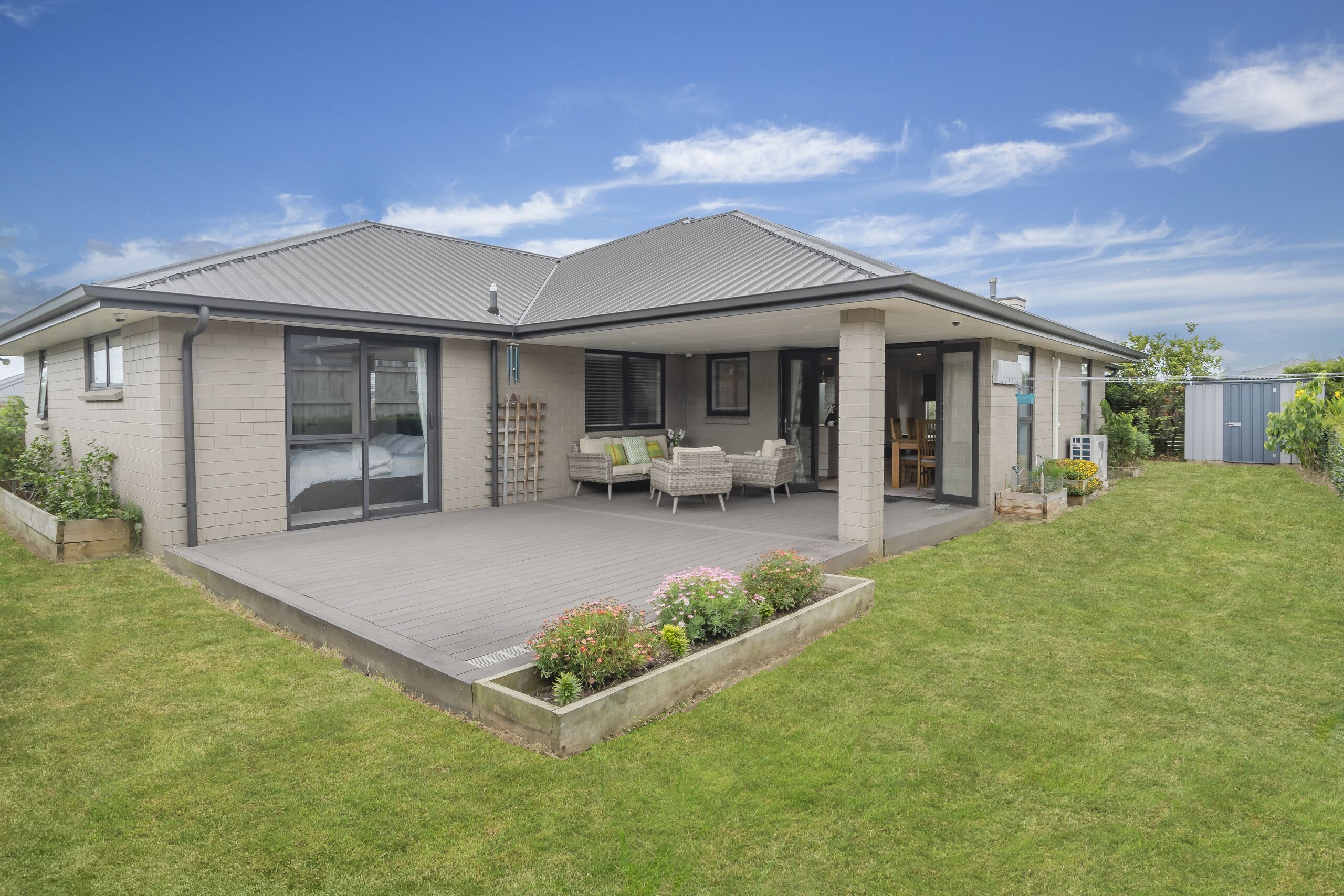 Unwind in the cozy lounge area, where a comfortable sofa bed provides additional sleeping space for a third guest. Slide open the large range doors to extend your living space onto the expansive deck, offering picturesque views of our beautifully landscaped courtyard and garden.