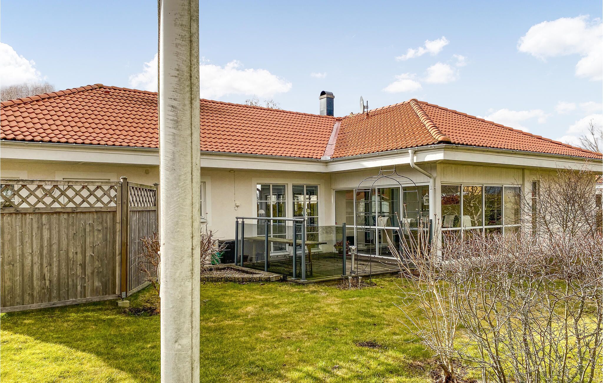 Layout: Annex: (2x bunk bed) Kitchen(cooker(electric), coffee machine, microwave, fridge-freezer), Living/bed room(2x double folding bed, TV(swedish TV channels)), bathroom(washbasin, toilet), conservatory, shower(reachable from the outside), heating(electric), garden furniture, BBQ, parking