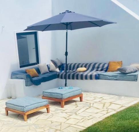 The room opens onto a large terrace equipped with a dining table outdoors next to a 2nd fireplace where one can barbeque. In the 2nd terrace there are two networks and a few puffs on the floor. There is satellite TV, stereo hi-fi and wireless internet.