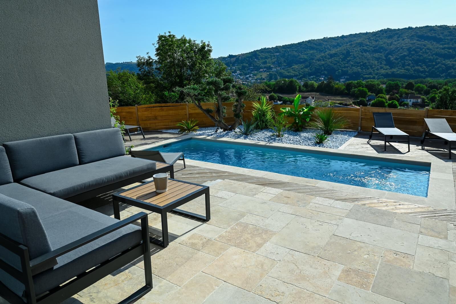 While you're here, you can enjoy all the comforts of home and more, including a pool and free WiFi, as well as a garden and a private deck. Other amenities include towels, an ironing board, soap, and toilet paper.