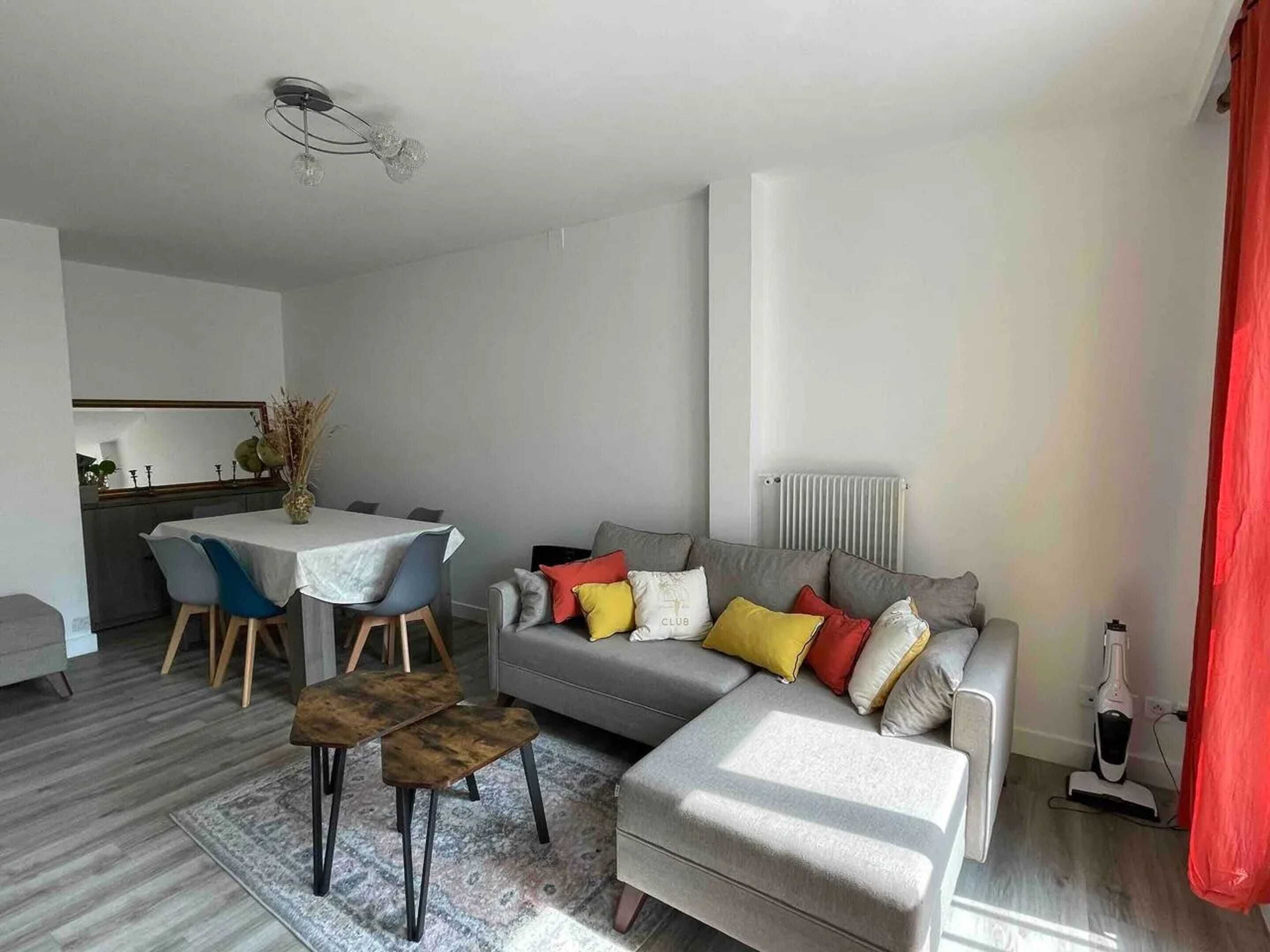 The Cocoonr/Book&Pay agency offers you to rent this charming 48 m² apartment in Villiers-sur-Marne which can accommodate up to 4 people. Located on the 3rd floor (with elevator), it comprises an attractive living room, a fully-equipped kitchen, a beautiful bedroom and a bathroom (with bathtub). Wi-Fi (fiber optic), bed linen and towels included, we're waiting for you!