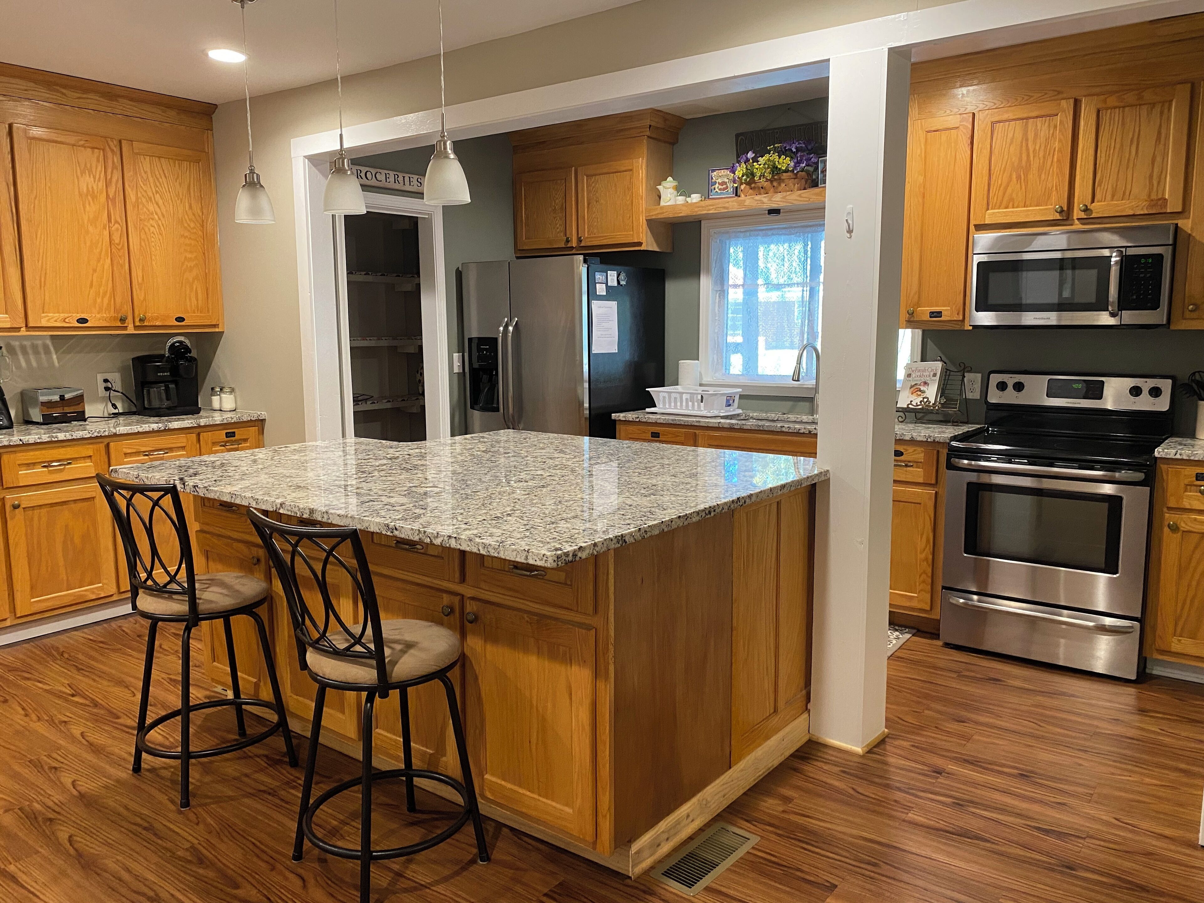 Right next to the WPA Center! Perfect for your place to stay after a wedding there! Easy walk or bike to downtown Carrollton. The fire pit will have firewood stocked nearby for those chilly evenings with s’mores and hotdog roasting! Enjoy a long shower thanks to our tankless water heater. Create a culinary masterpiece using our gas range or mini outdoor kitchen. Wash clothes before leaving so you don’t have to worry about it at your next destination. It’s simple, but we love our home.