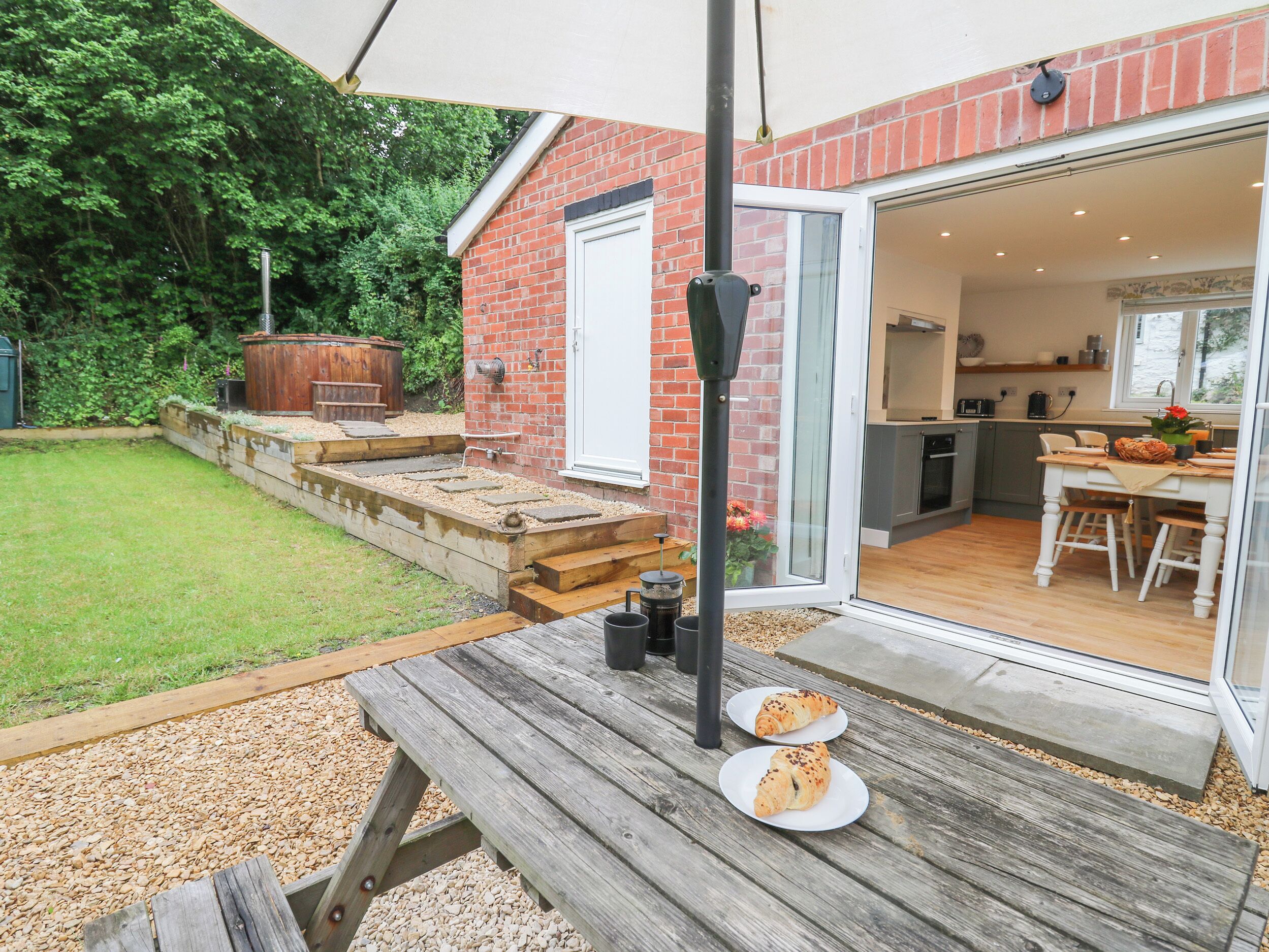 Amenities: Eco-friendly property with solar panels and underfloor heating. Double electric oven and hob, microwave, fridge, freezer, washing machine, dishwasher, tumble dryer. WiFi. Fuel and power inc. in rent. Bed linen and towels inc. in rent. Off-road parking for 3 cars. Wraparound garden with lawn, patio, and furniture. Two well-behaved pets welcome, please note that the upstairs is carpeted and the pets should be left downstairs. Sorry, no smoking. Shop 0.4 miles, pub 0.5 miles, river 0.5 miles, bridle pass is a 3 minute walk away. Note: Steps down in the lawn, please take care. Note: Ground-floor shower room accessed via boot room
