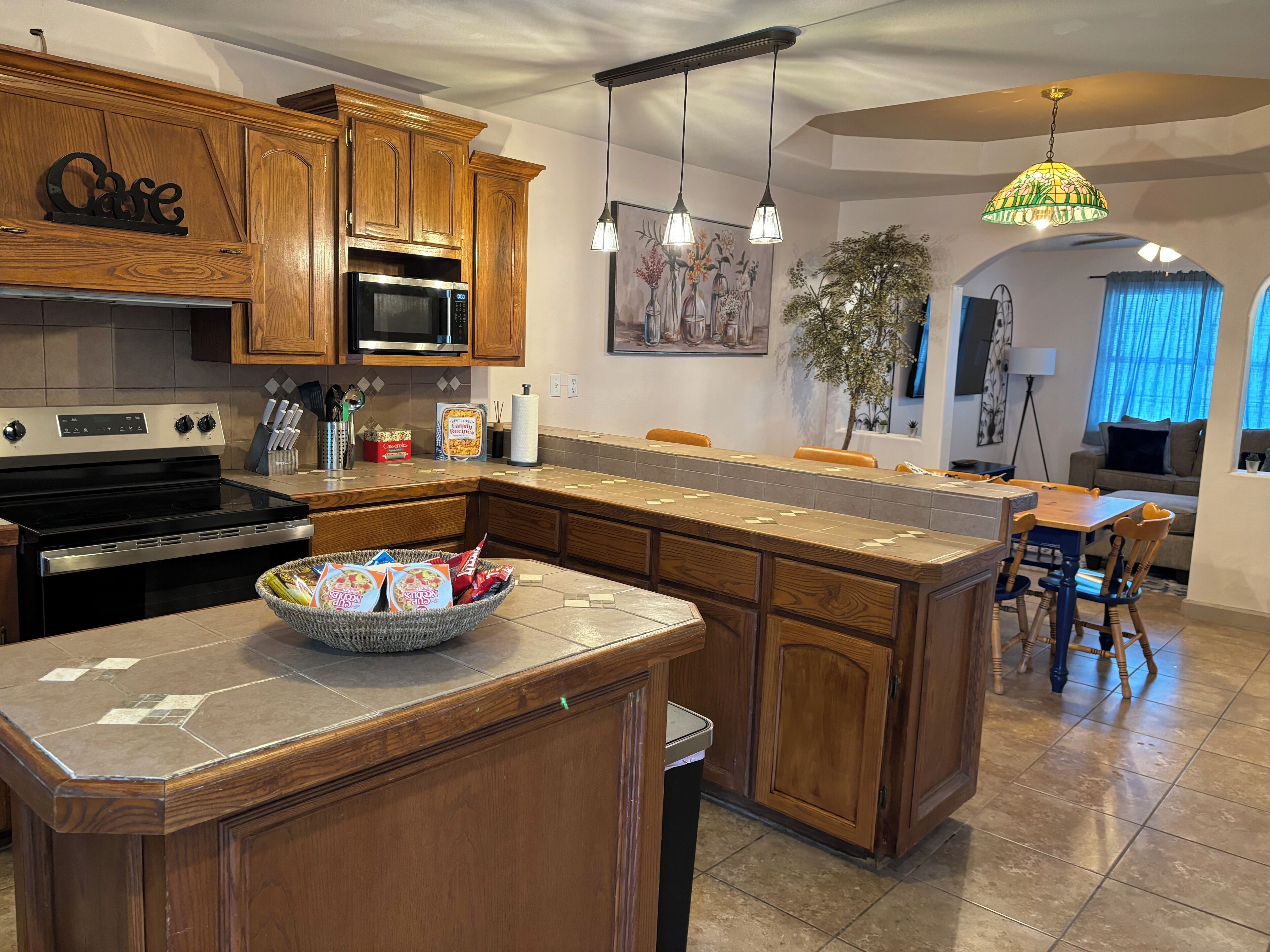Step inside to enjoy the open floor plan, filled with natural light and cozy furnishings. You’ll love relaxing in the living area, where each room has its own Smart TV, perfect for streaming your favorite shows and movies.