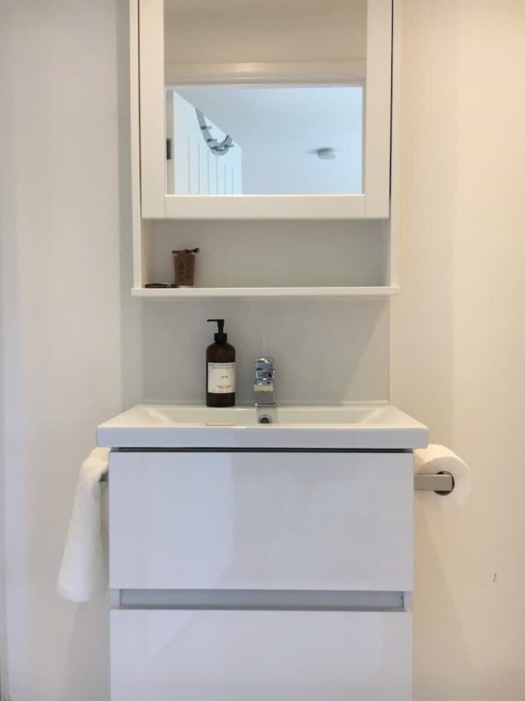 The bathroom is upstairs and has a large walk in shower cubicle.