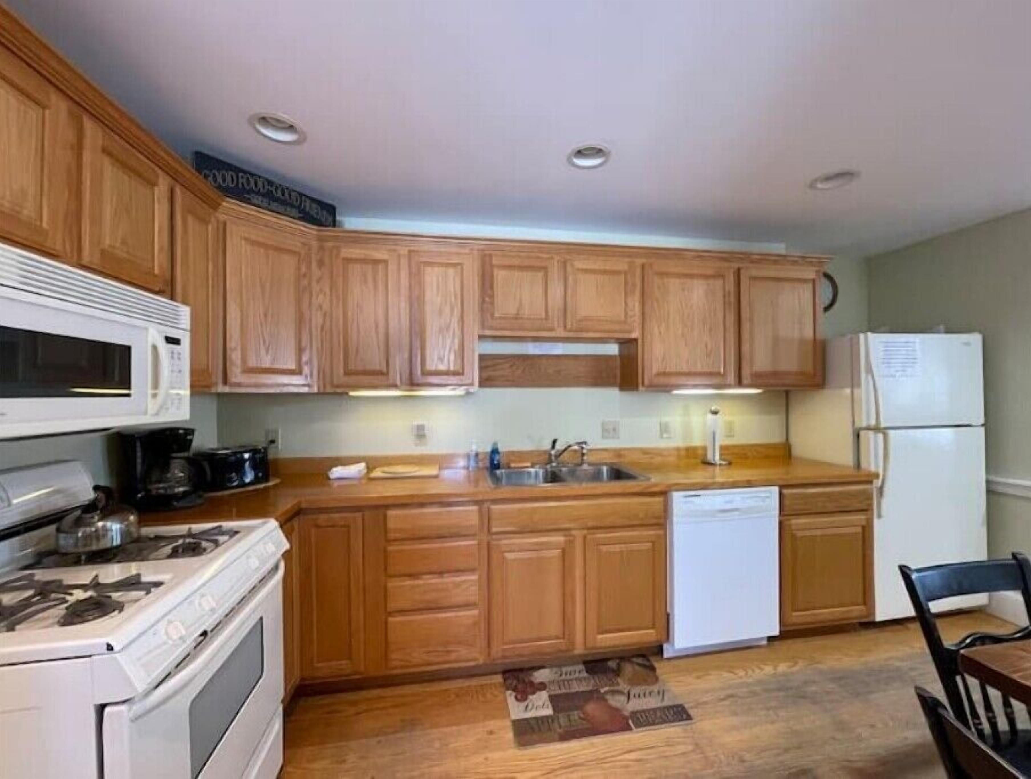 KITCHEN: Dishwasher, refrigerator, stove/oven, microwave, coffee maker, hot water kettle, toaster, cooking basics, dishware & flatware, trash bags & paper towels